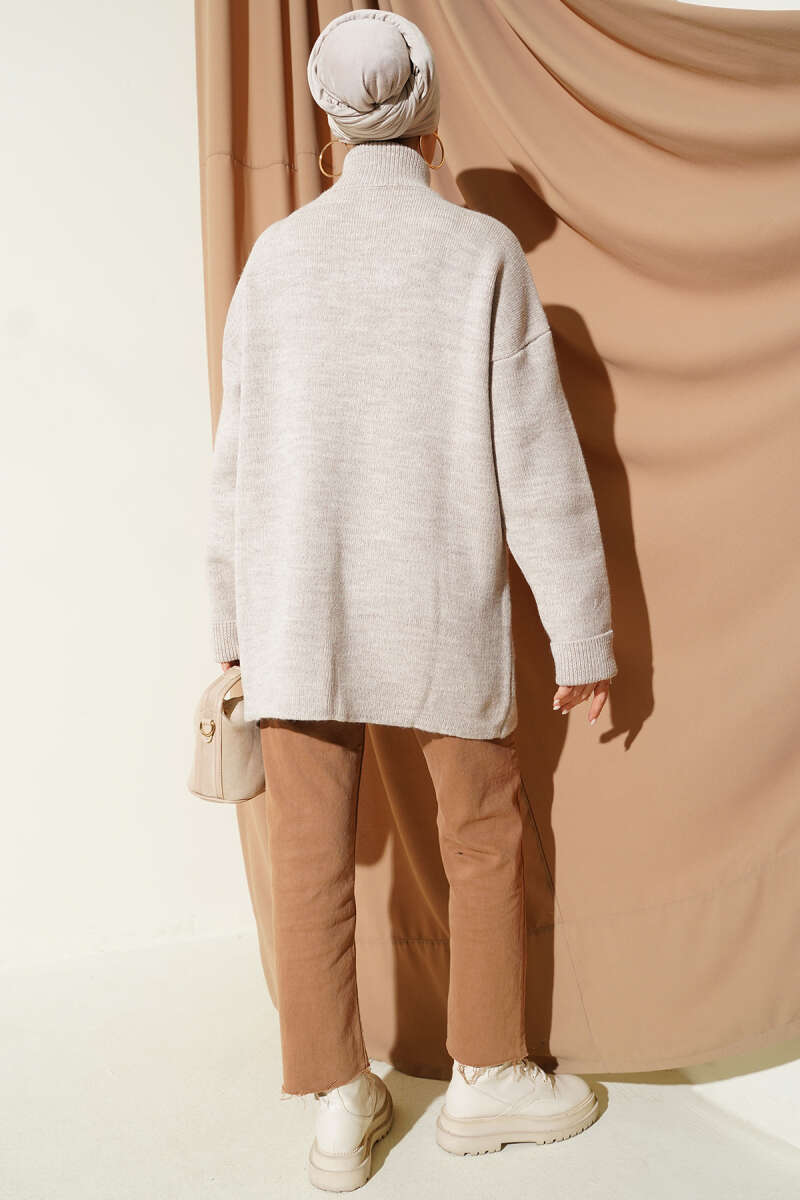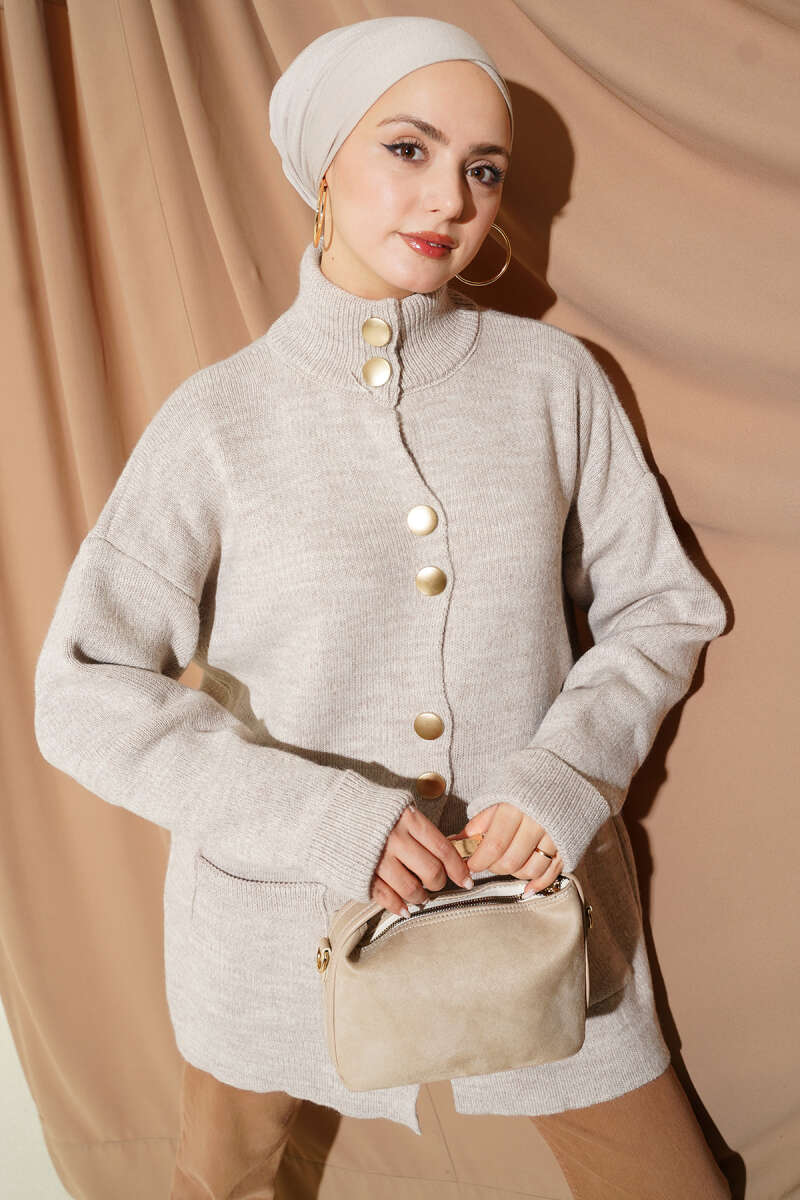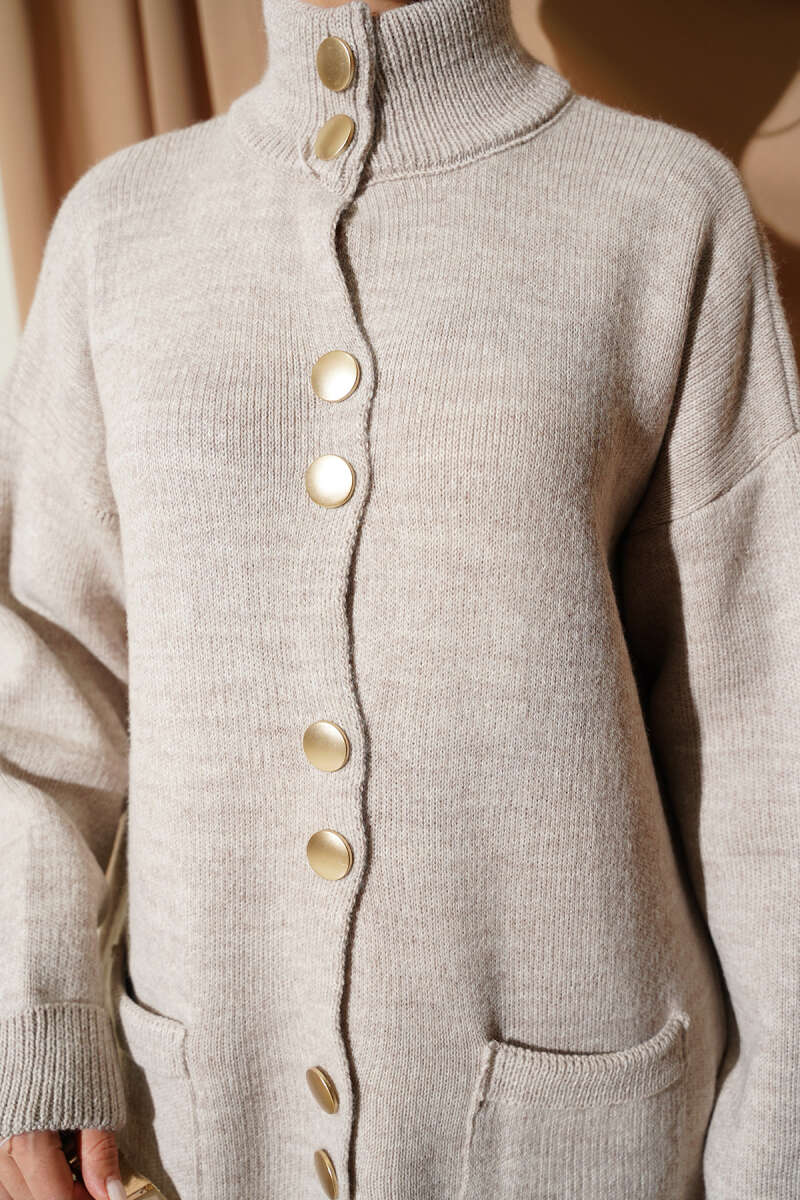 Cepli Gold Düğmeli Triko Hırka Vizon