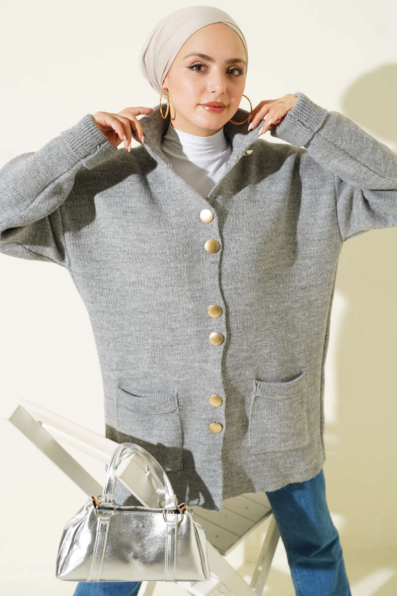 Cepli Gold Düğmeli Triko Hırka Vizon