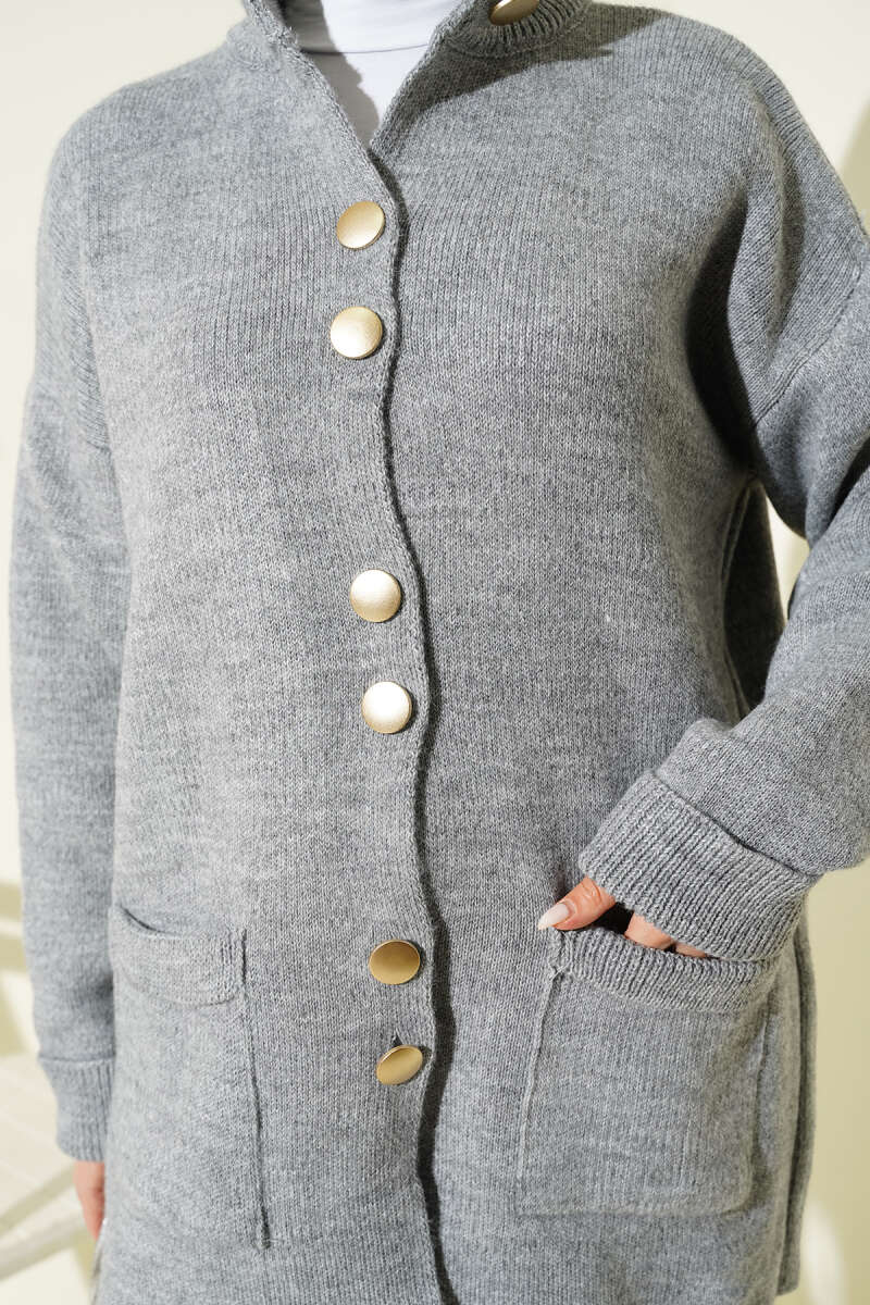 Cepli Gold Düğmeli Triko Hırka Kahve