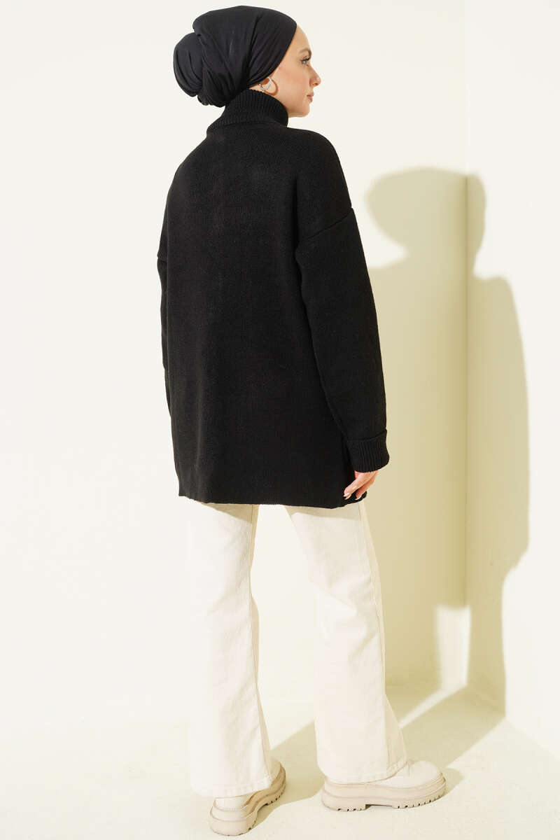 Balıkçı Yaka Parmak Geçirmeli Triko Kazak Kahve