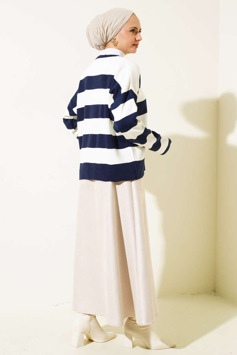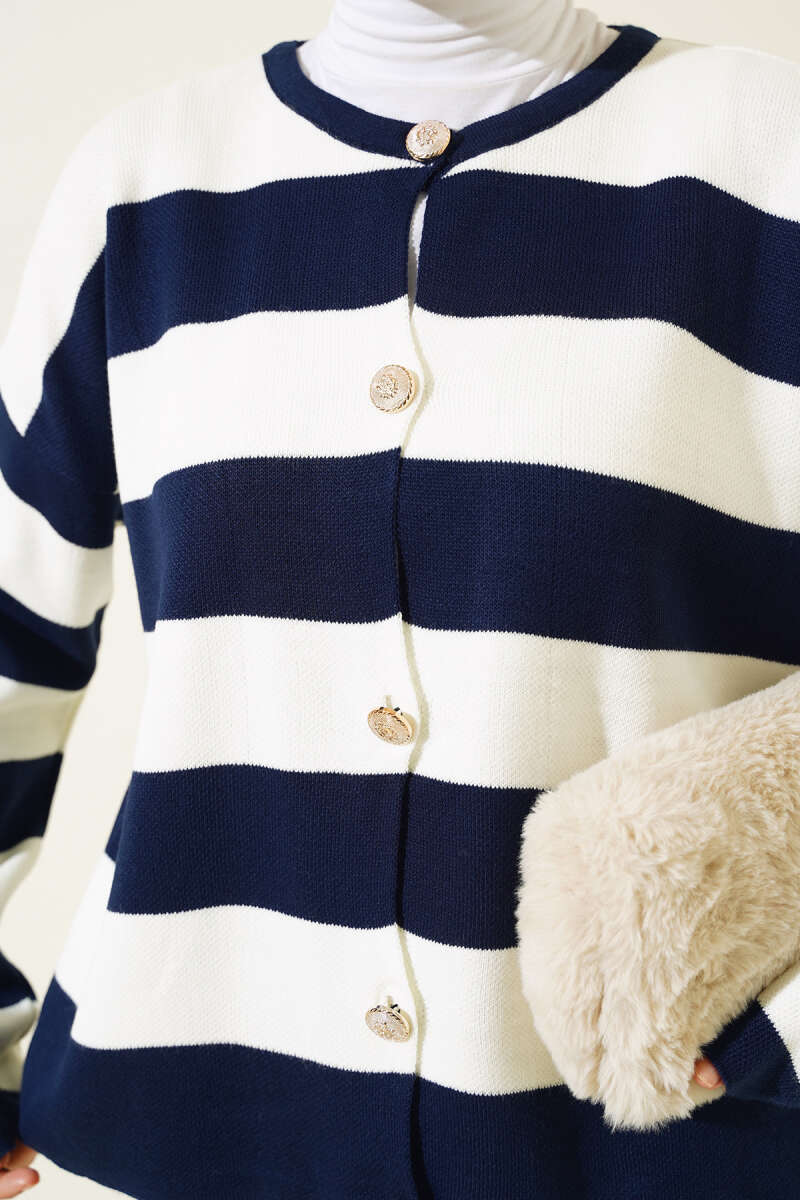 Yaka Dantelli Kısa Triko Hırka Lacivert