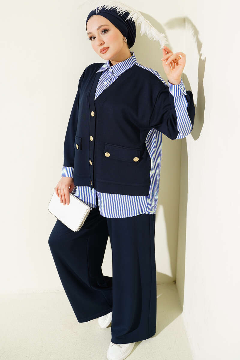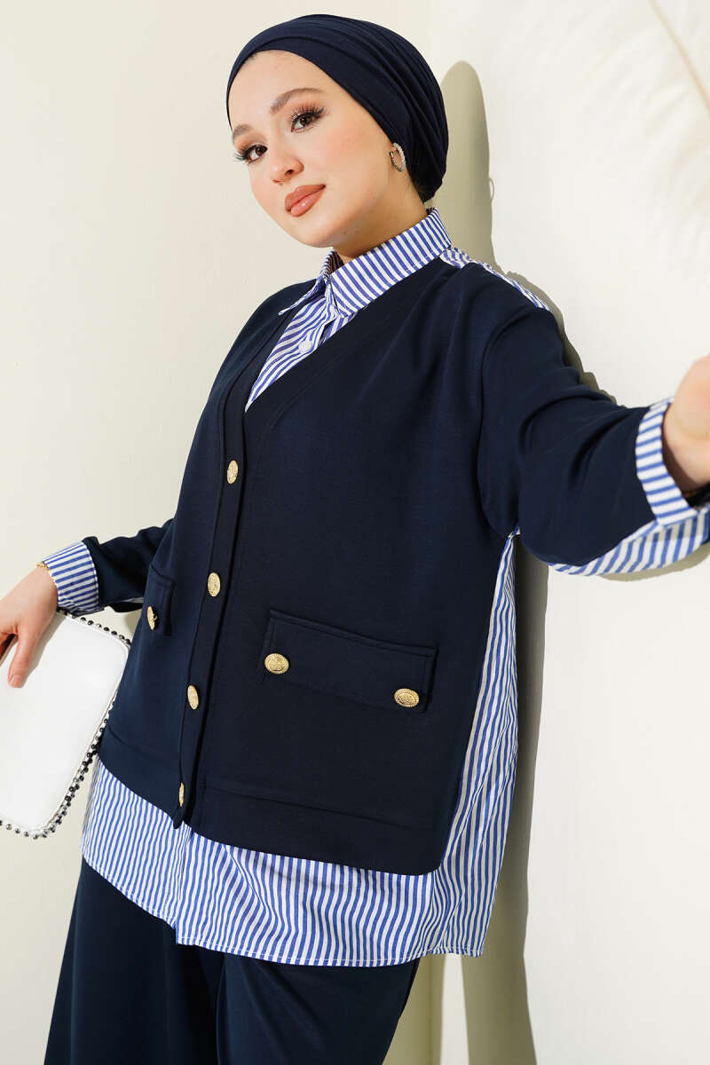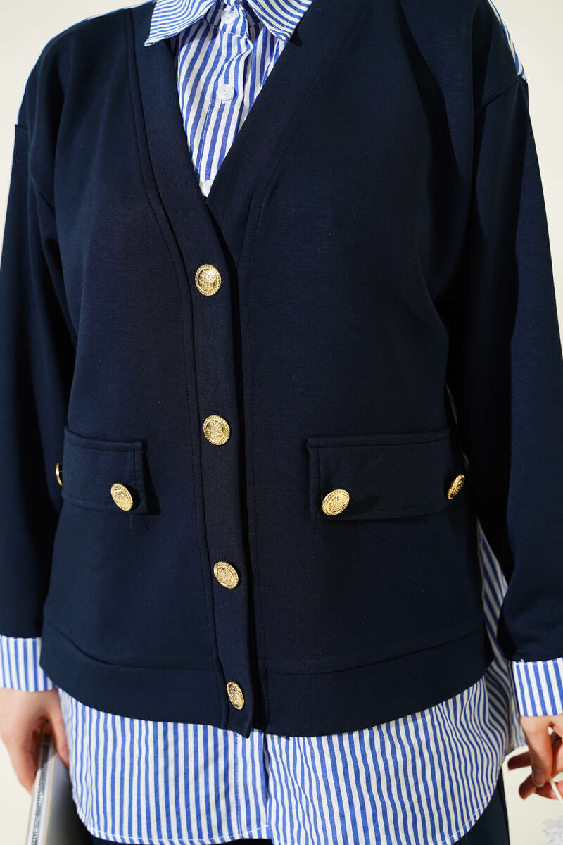 Gold Düğmeli Garnili Salaş İkili Takım Lacivert