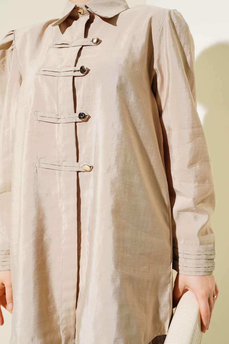 Gold Düğmeli İp Kuşaklı Gömlek Bej