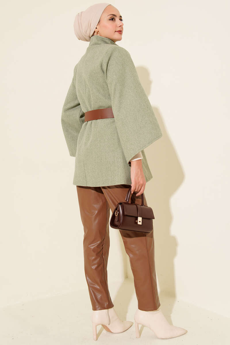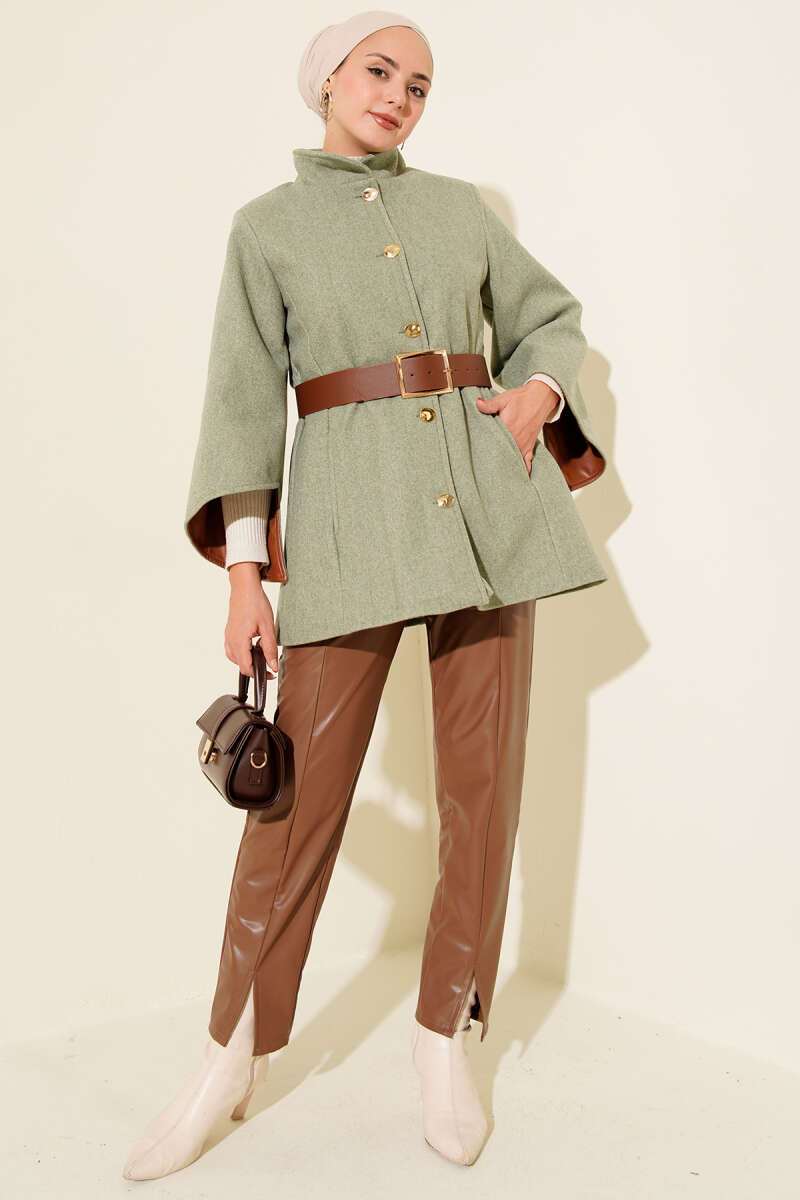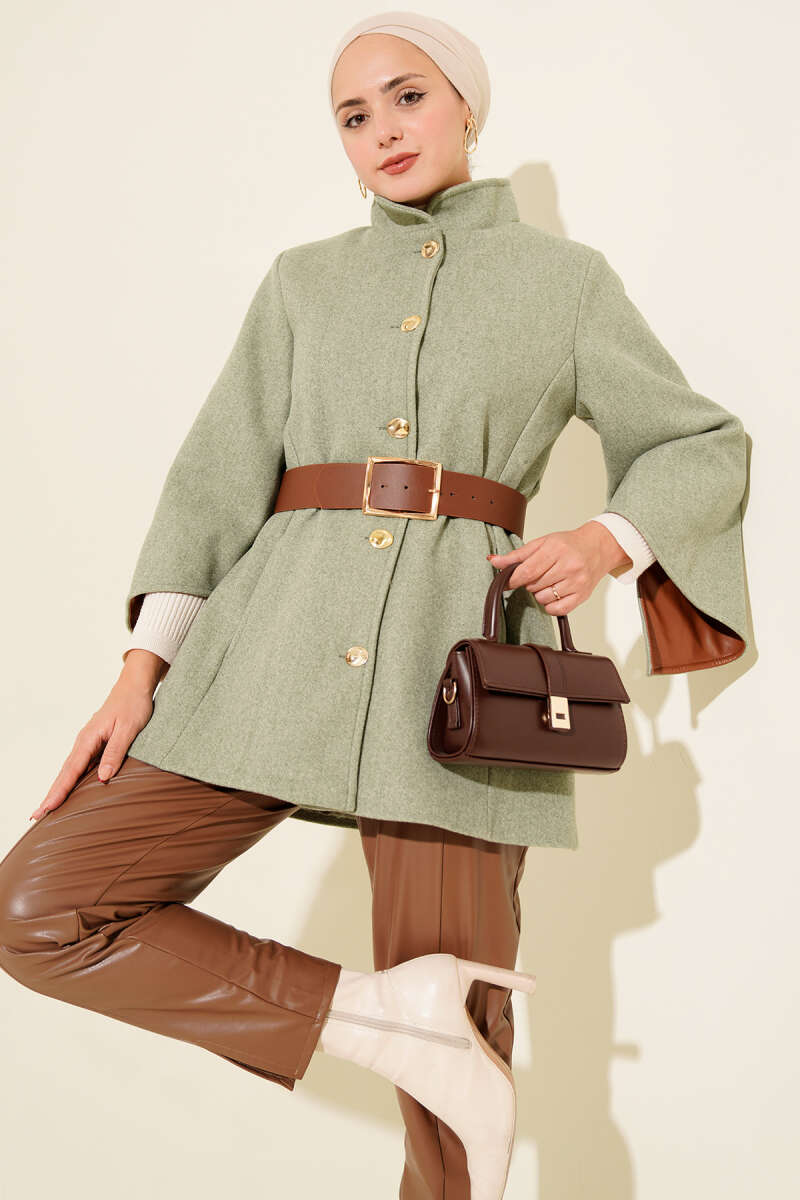 Gold Düğmeli Kaşe Panço Melanj Gri