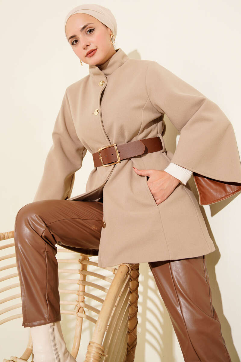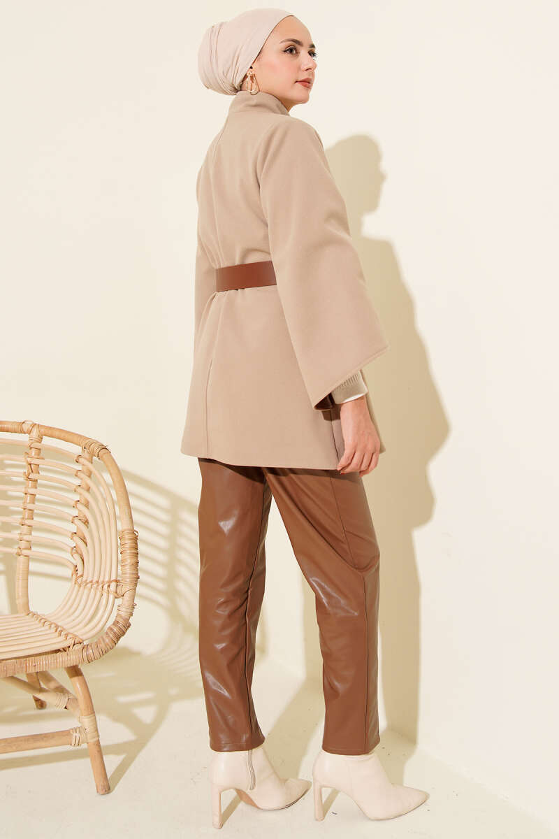 Gold Düğmeli Kaşe Panço Çağla Yeşili