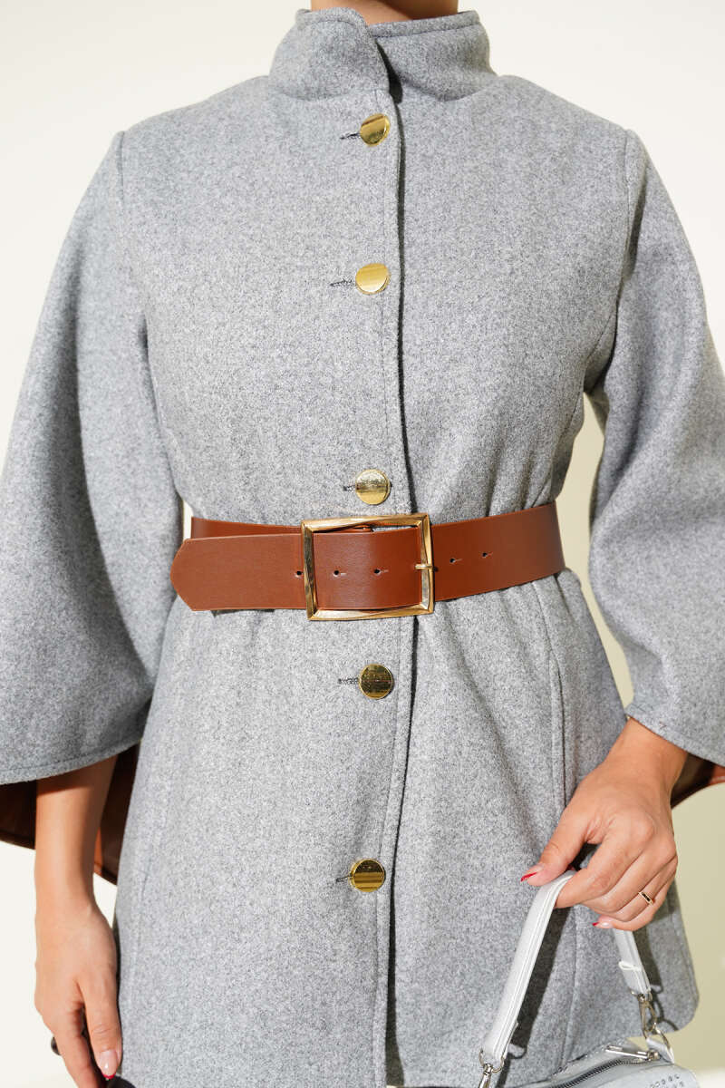 Dik Yaka Gold Düğmeli Kaşe Panço Taş
