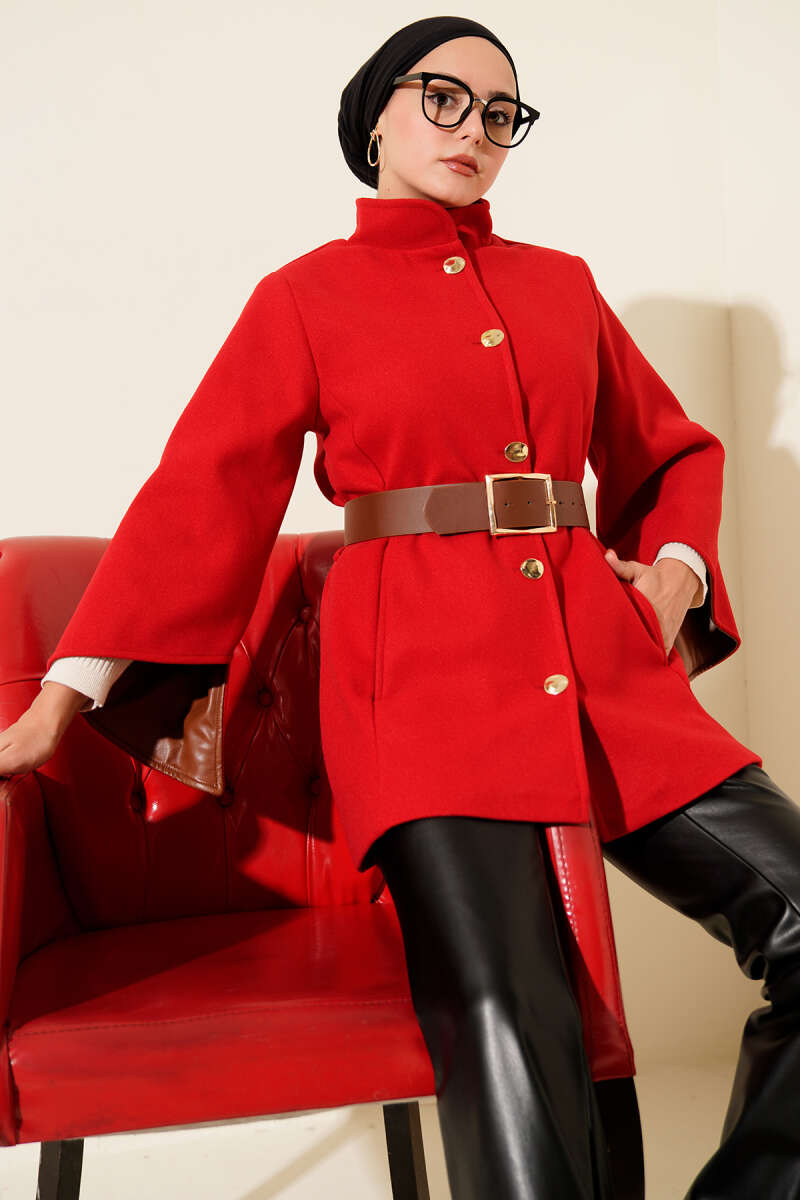 Gold Düğmeli Kaşe Panço Çağla Yeşili