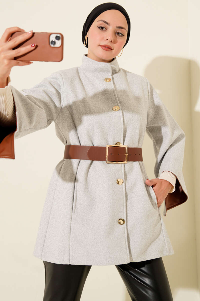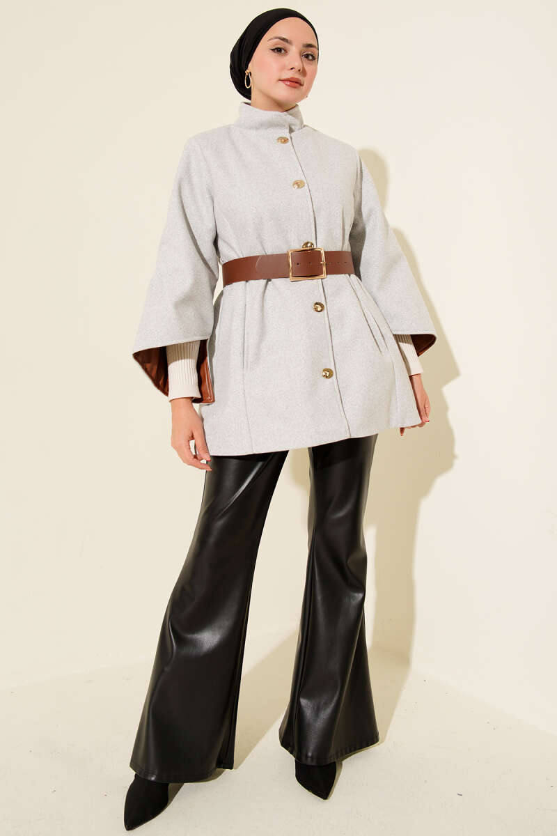 Gold Düğmeli Kaşe Panço Gri