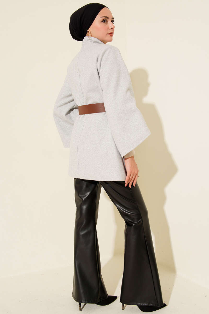 Gömlek Yaka Kemerli Panço Füme