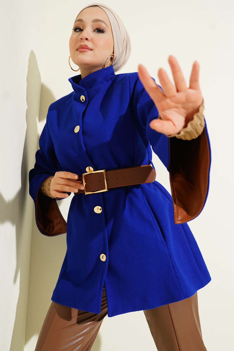 Hakim Yaka Kuşaklı Kaşe Panço Camel