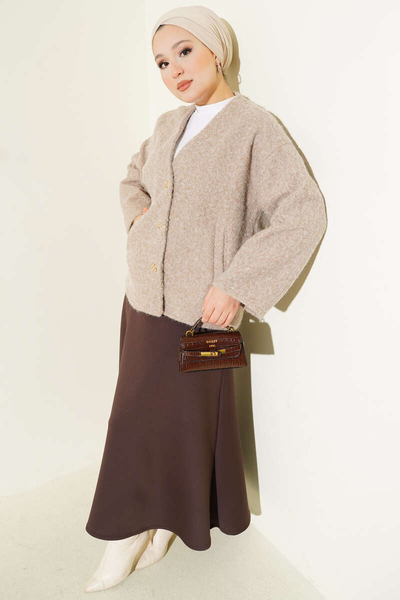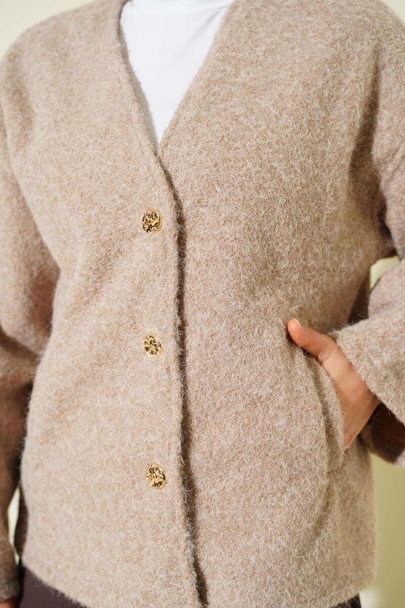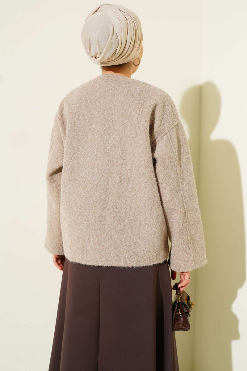 Gold Düğmeli Keçe Kısa Ceket Taba