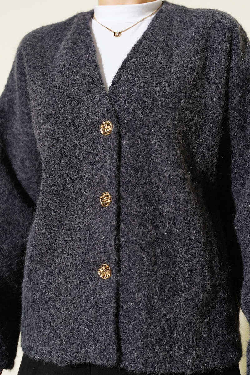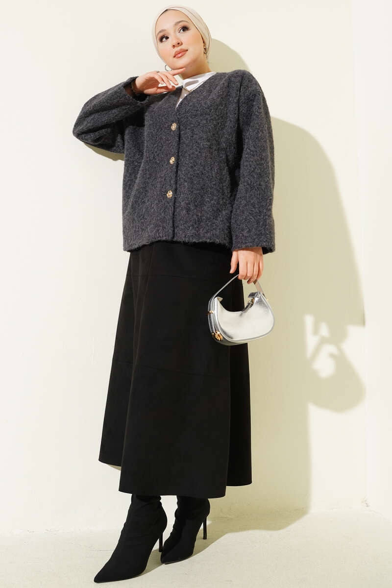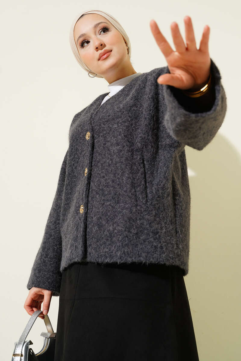 Gold Düğmeli Keçe Kısa Ceket Siyah