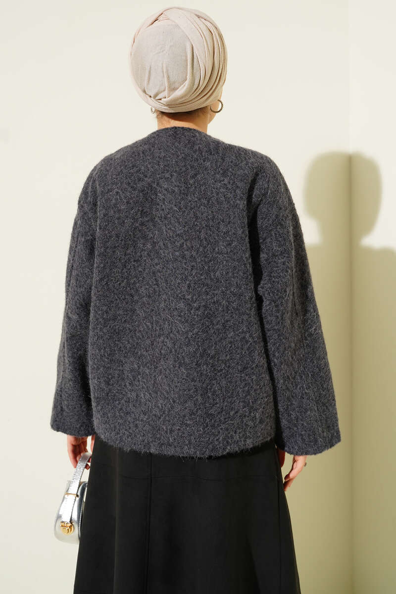 Önü Bağlamalı Keçe Kısa Ceket Siyah