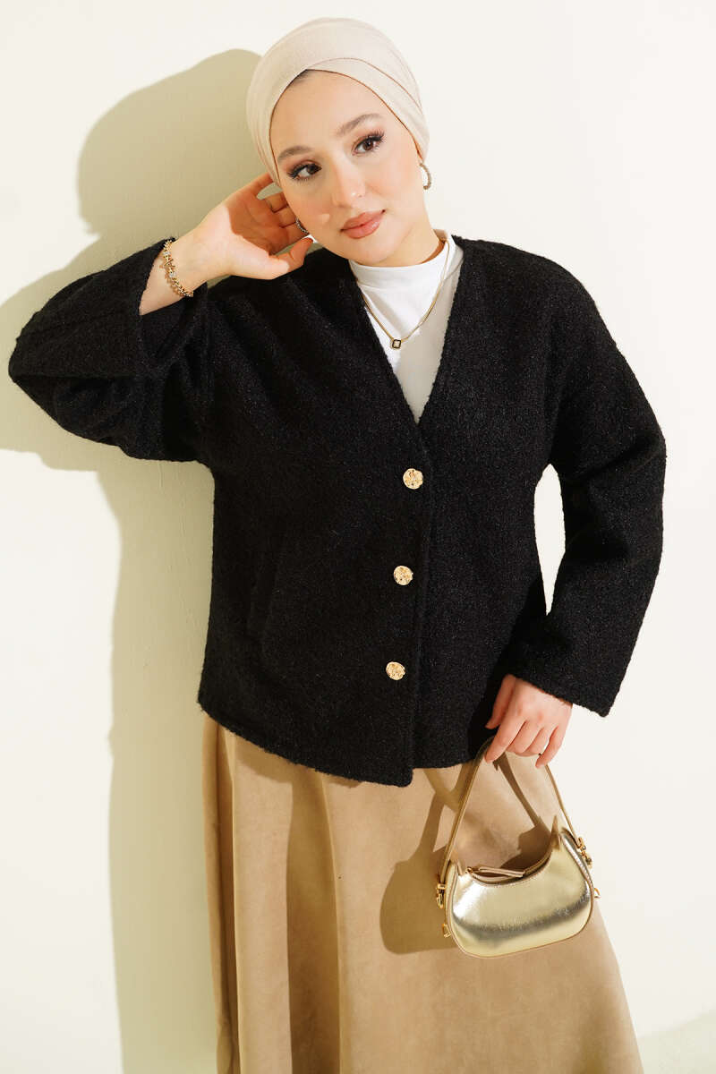 Önü Bağlamalı Keçe Kısa Ceket Siyah