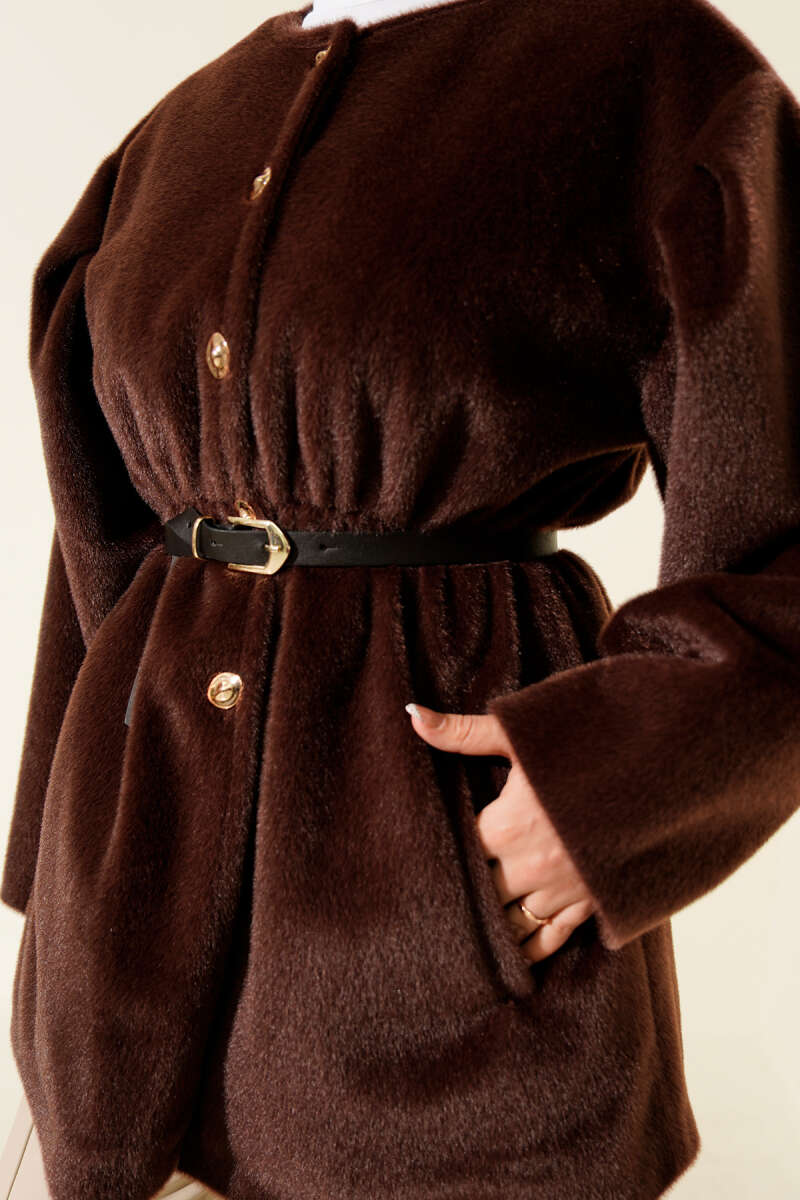 Tek Düğmeli Kemerli Sakallı Ceket Sarı