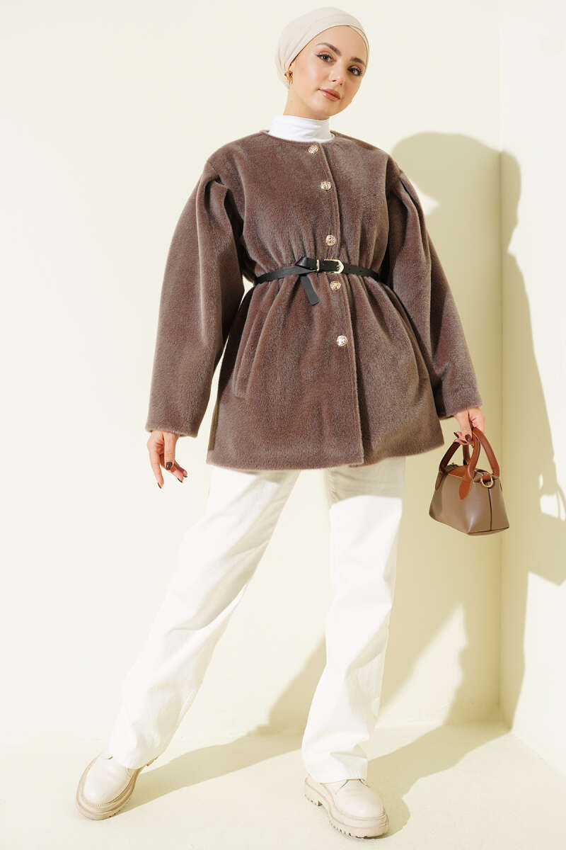 Gold Düğmeli Kemerli Goldfox Ceket Kahve