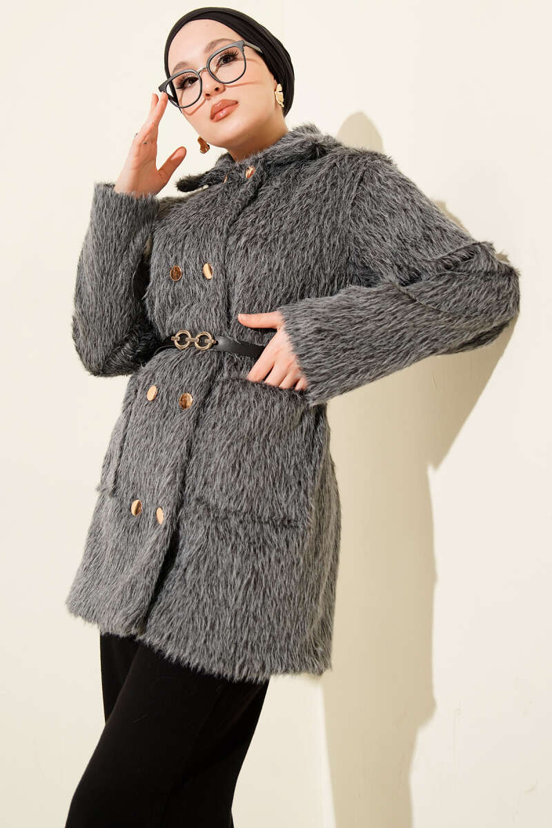 İp Bağlamalı Duble Kol Triko Tunik Füme