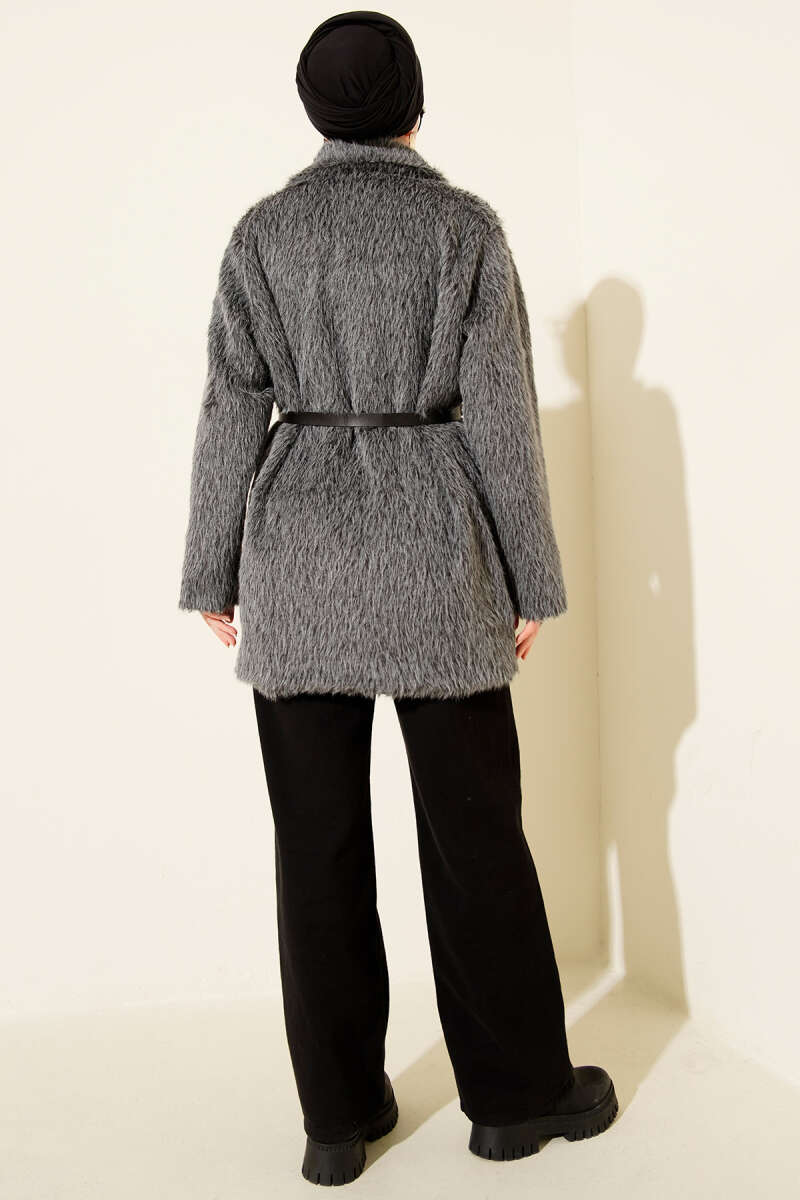 Atkı Detaylı Ekoseli Gömlek Antrasit