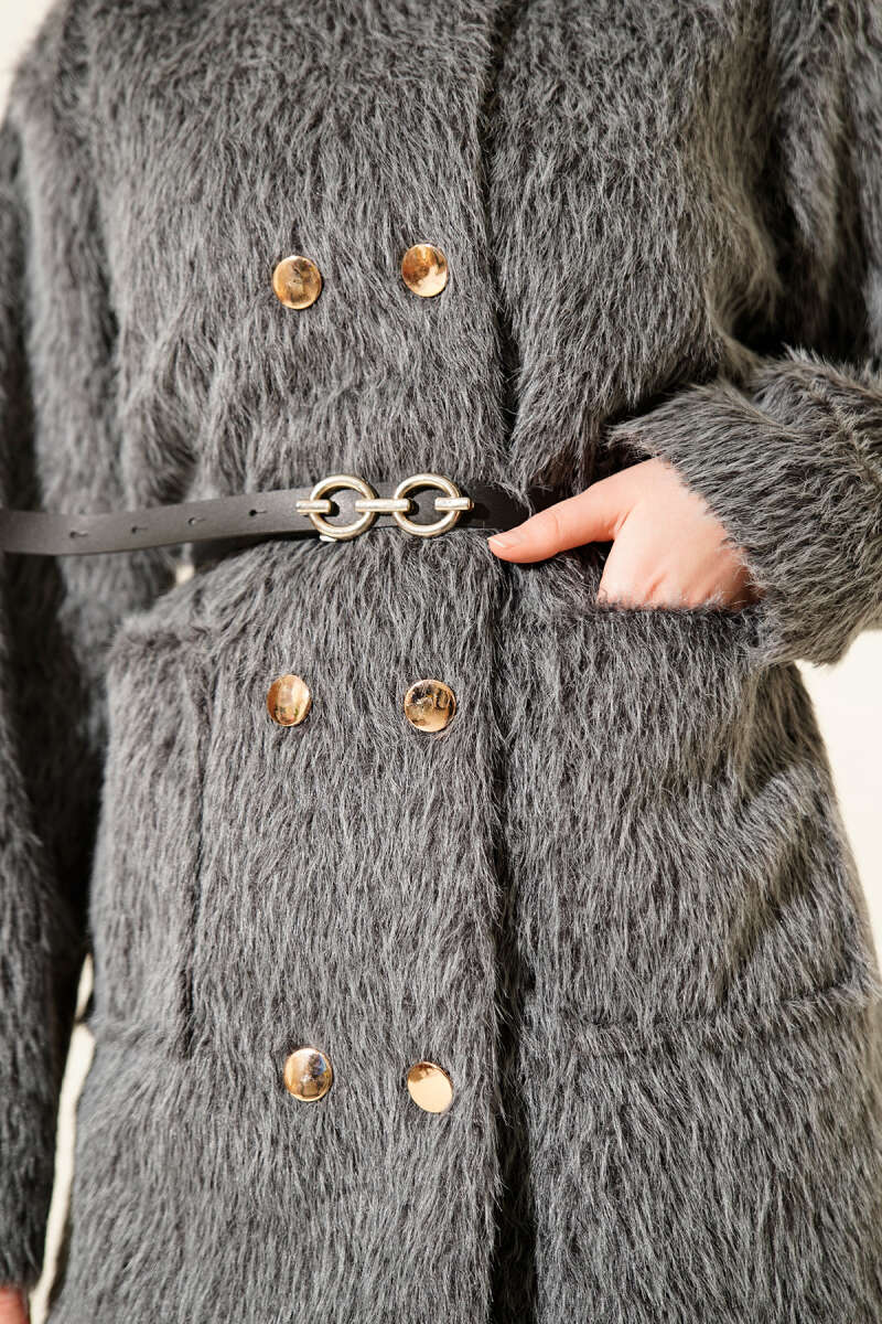 Goldfox Kuşaklı Uzun Yelek Pudra