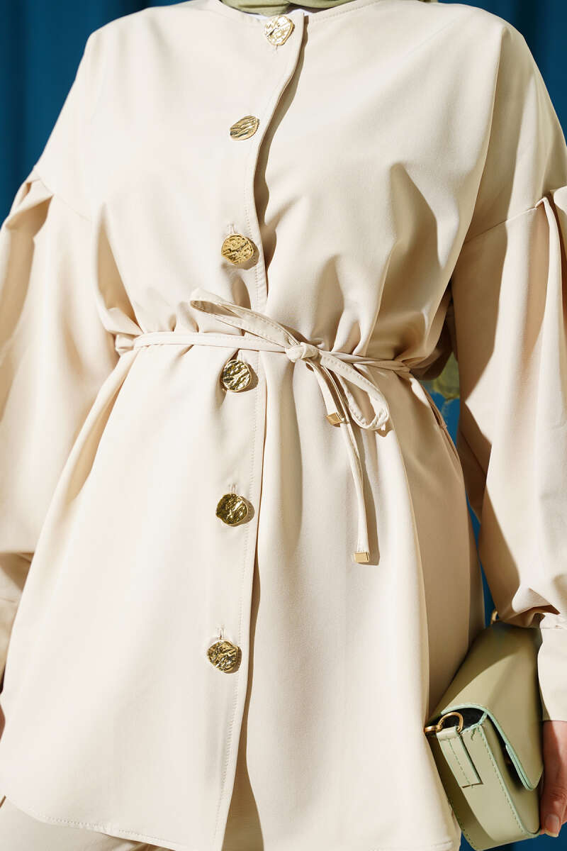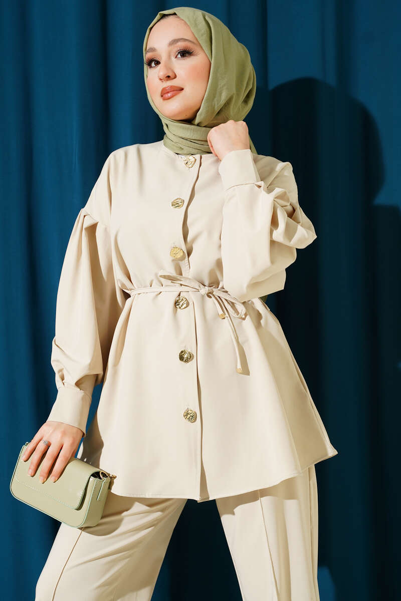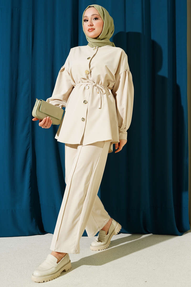 Metal Düğmeli Dabıl İkili Takım Bej