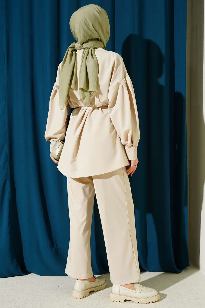 Pelerin Bel Tünelli Modal İkili Takım Vizon