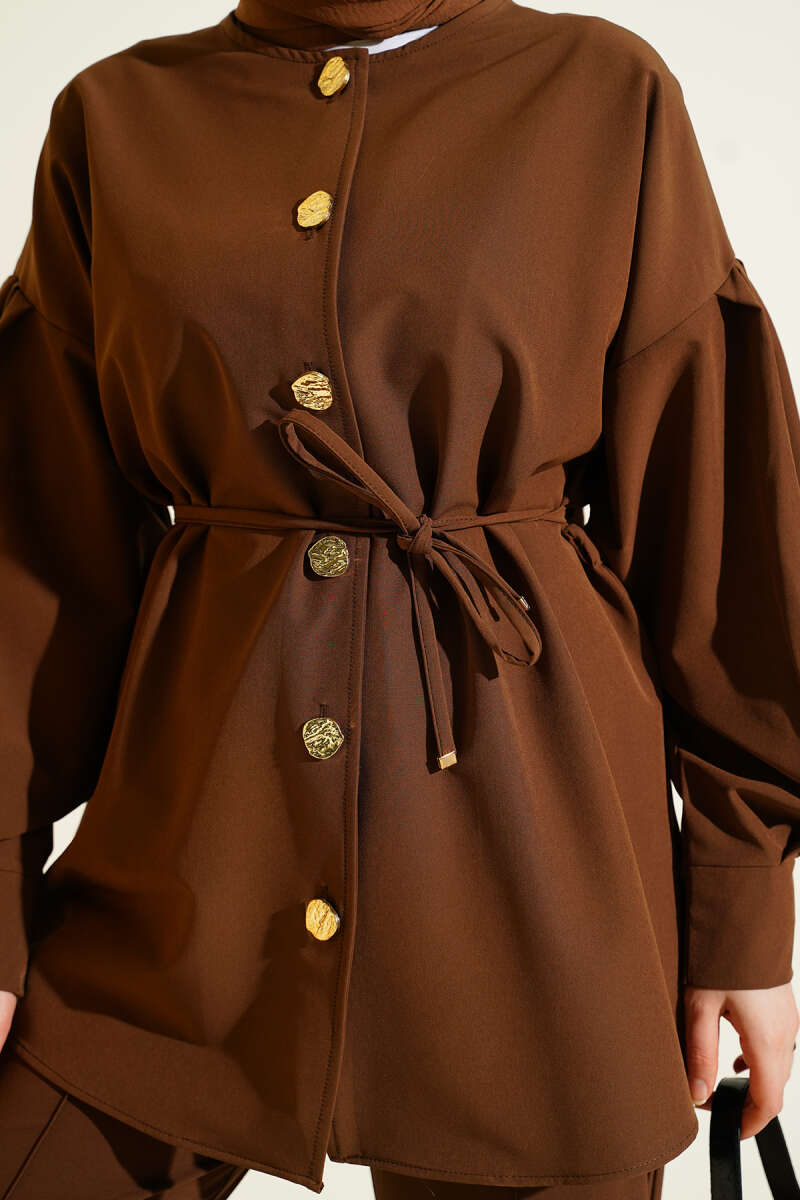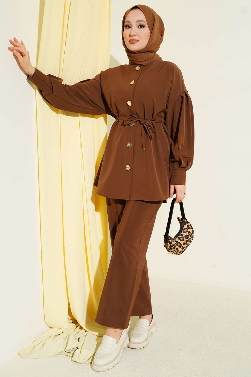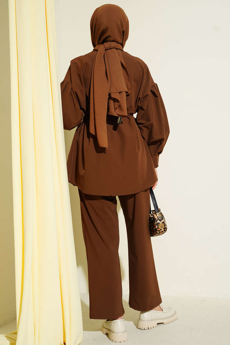 Pelerin Bel Tünelli Modal İkili Takım Kahve