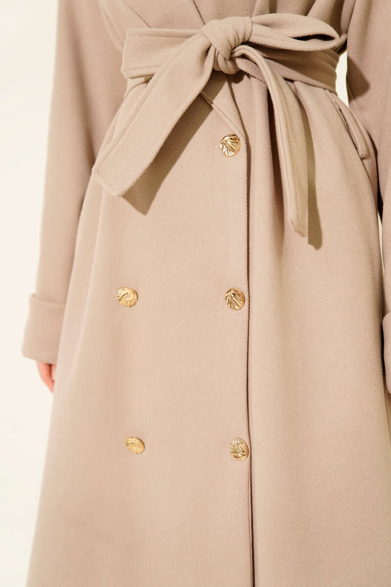 Gold Düğmeli Kruvaze Kaşe Kaban Kahve