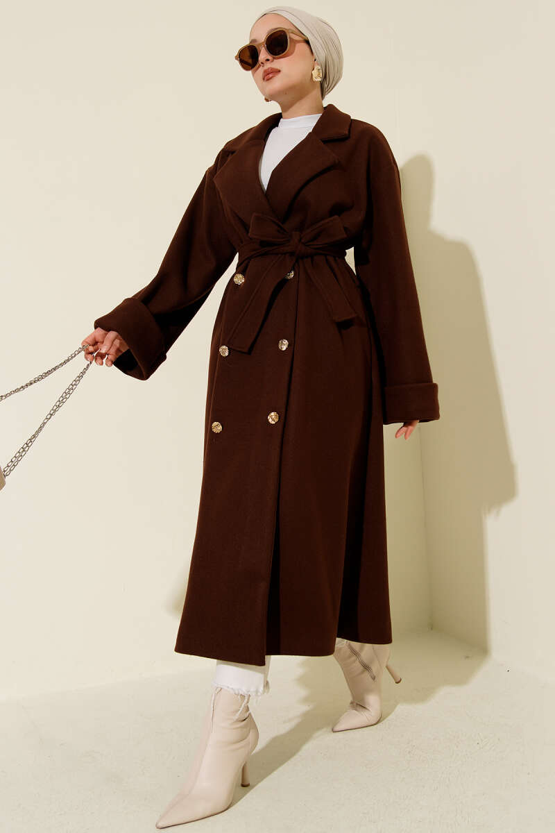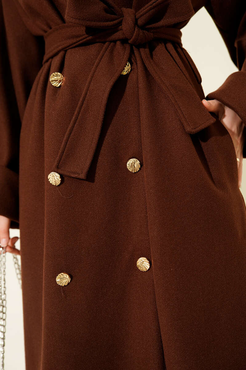 Gold Düğmeli Kruvaze Kaşe Kaban Bej
