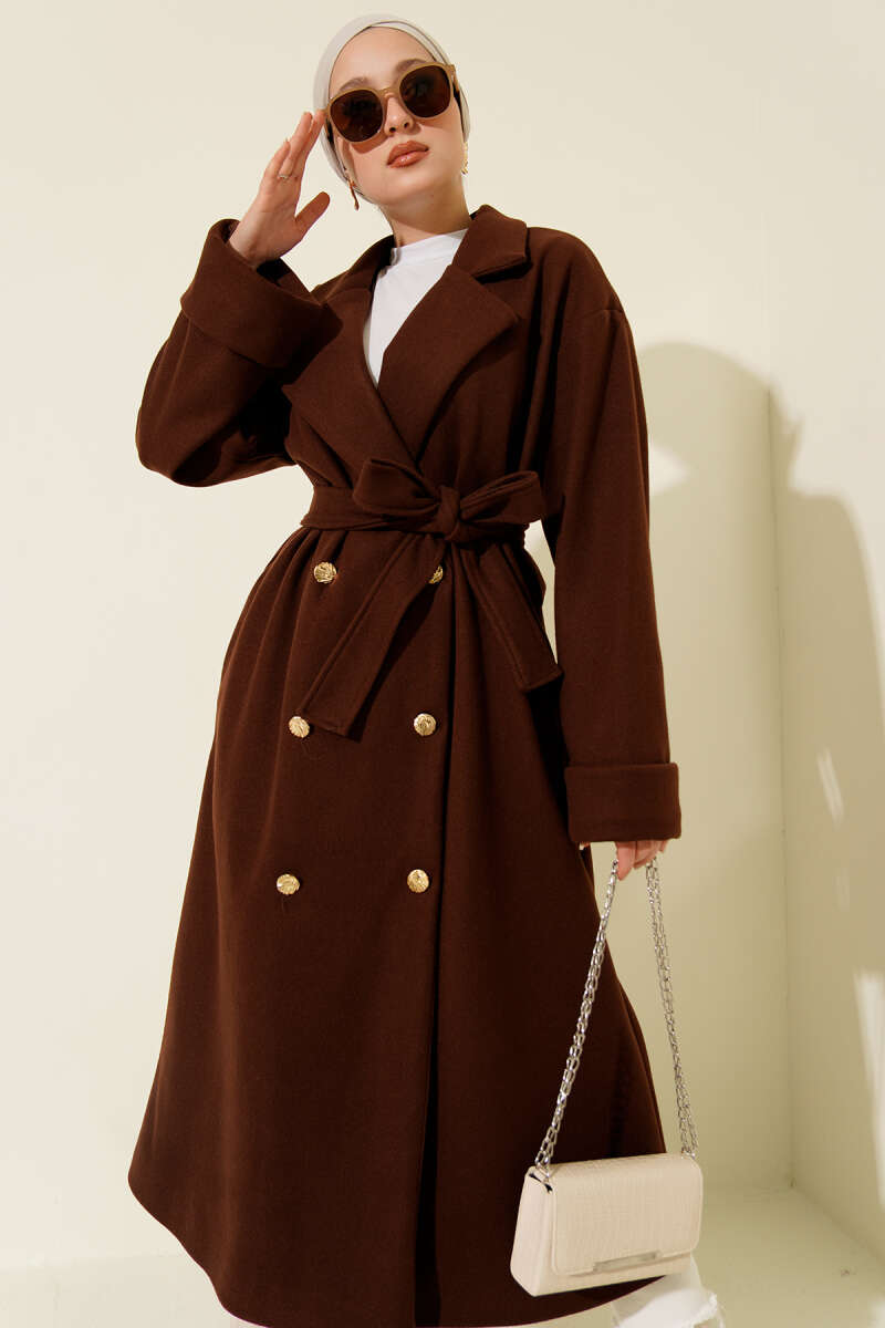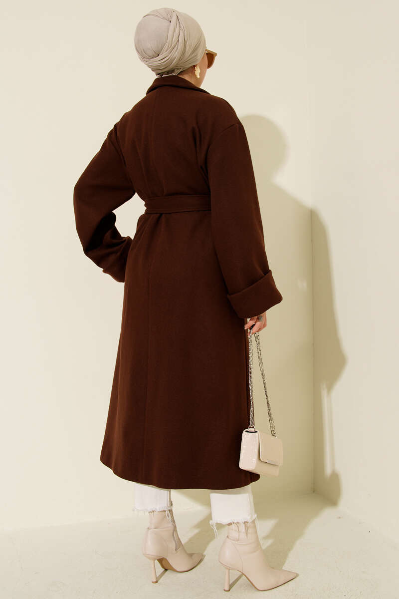 Uzun Pensli Kemerli İkili Takım Kahve