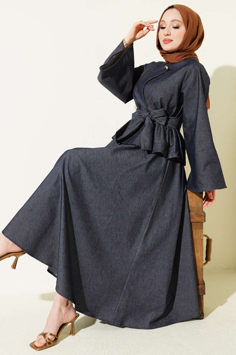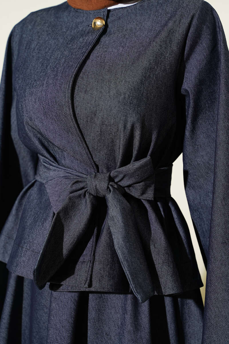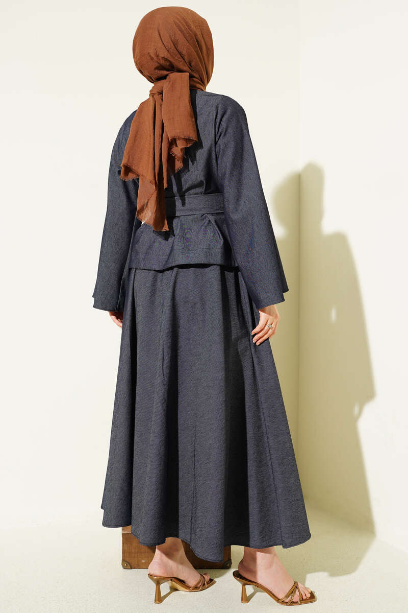 Gold Düğmeli Kuşaklı Etekli Takım Kot