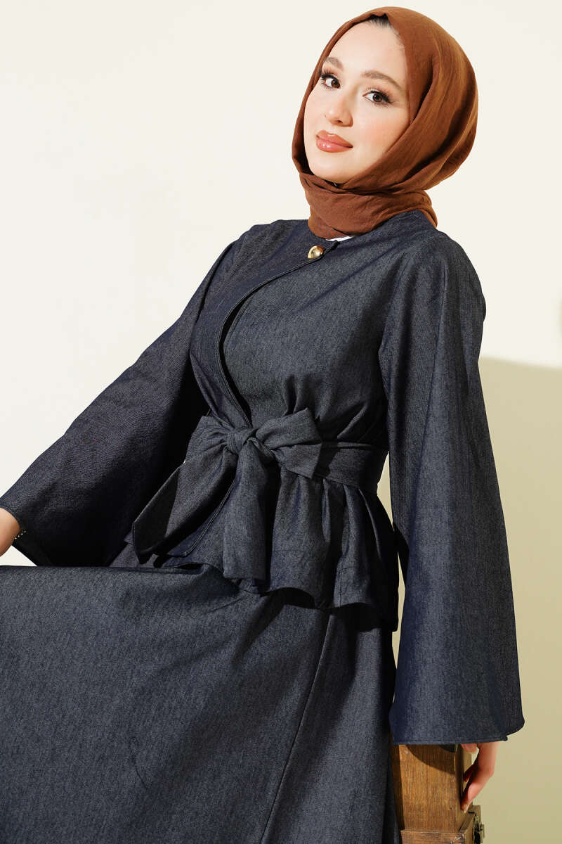 Gold Düğmeli Kuşaklı Kot Etekli Takım Kot