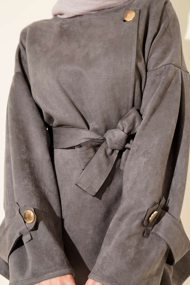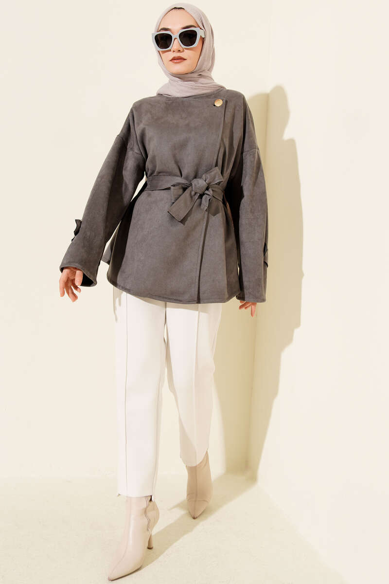Hakim Yaka Çıtçıtlı Sakallı Ceket Füme