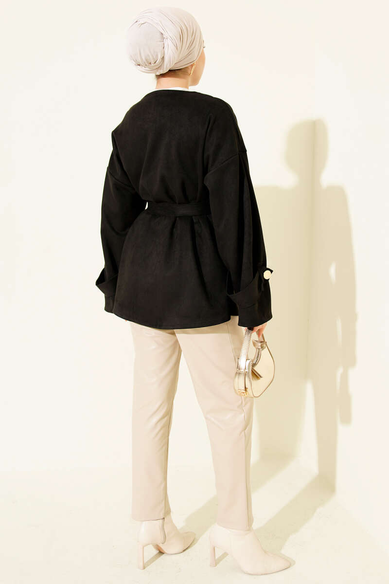 Düğmeli Sakallı Kısa Ceket Siyah