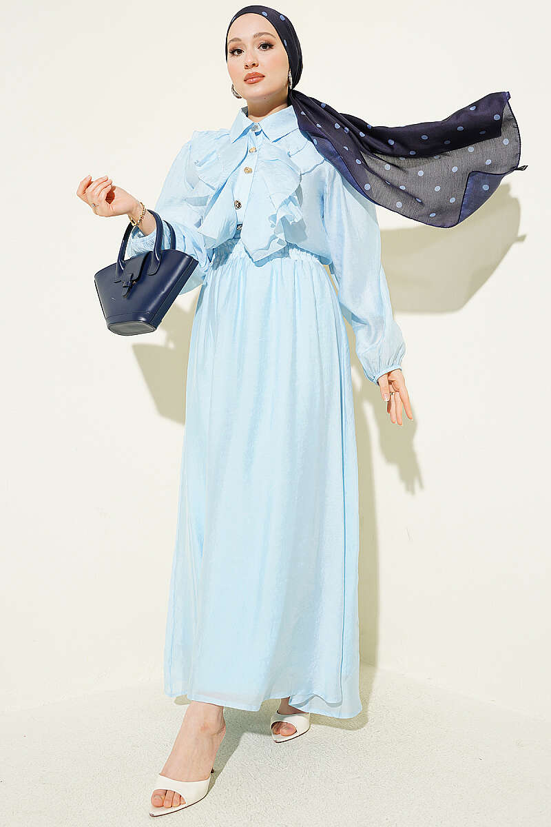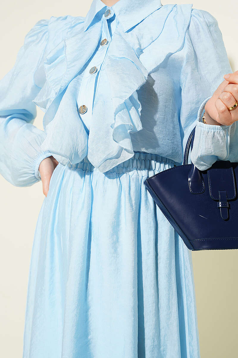Gold Düğmeli Önü Fırfırlı Etekli Takım Bebe Mavi