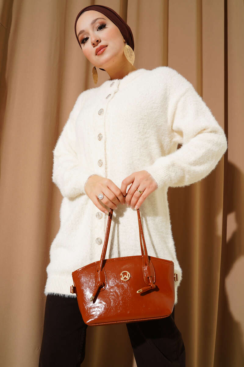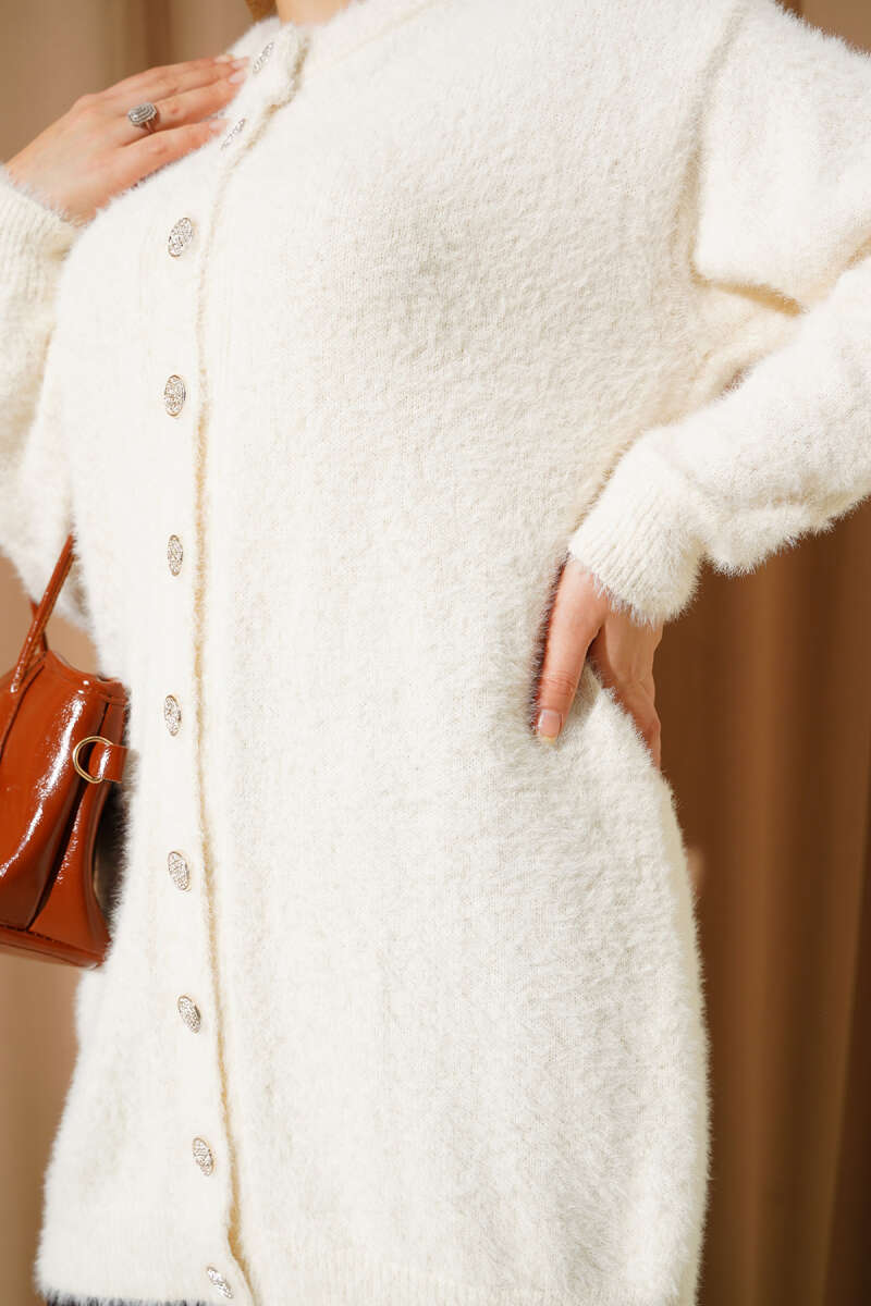 Üç Düğmeli Kısa Triko Hırka Bej