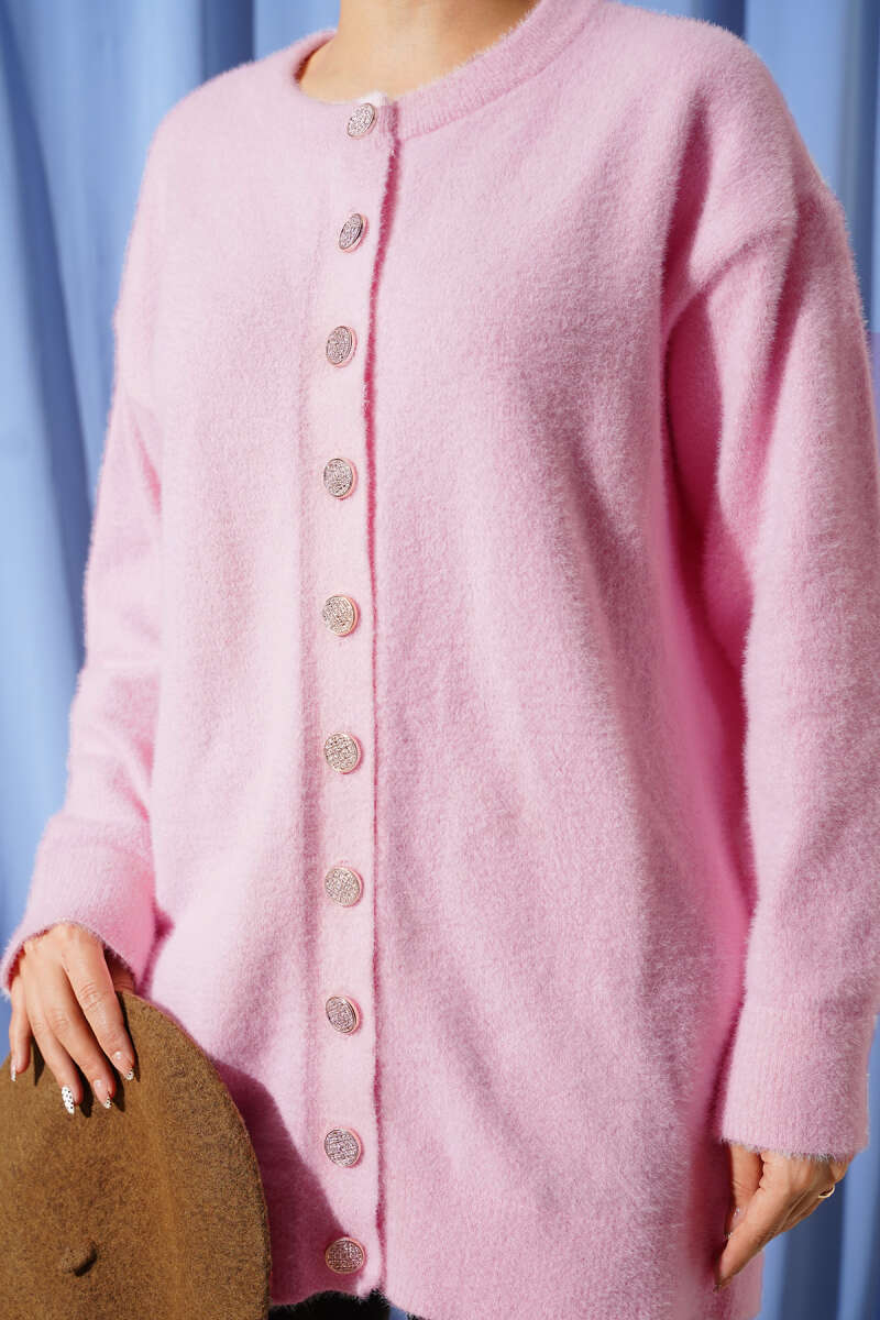 İnci Düğmeli Triko İkili Takım Siyah