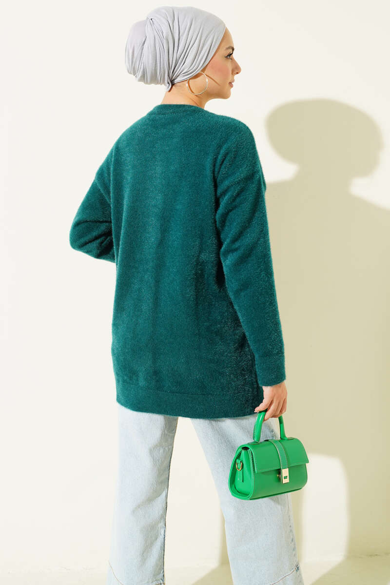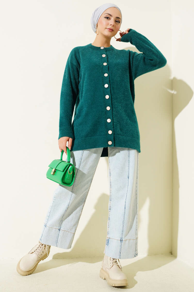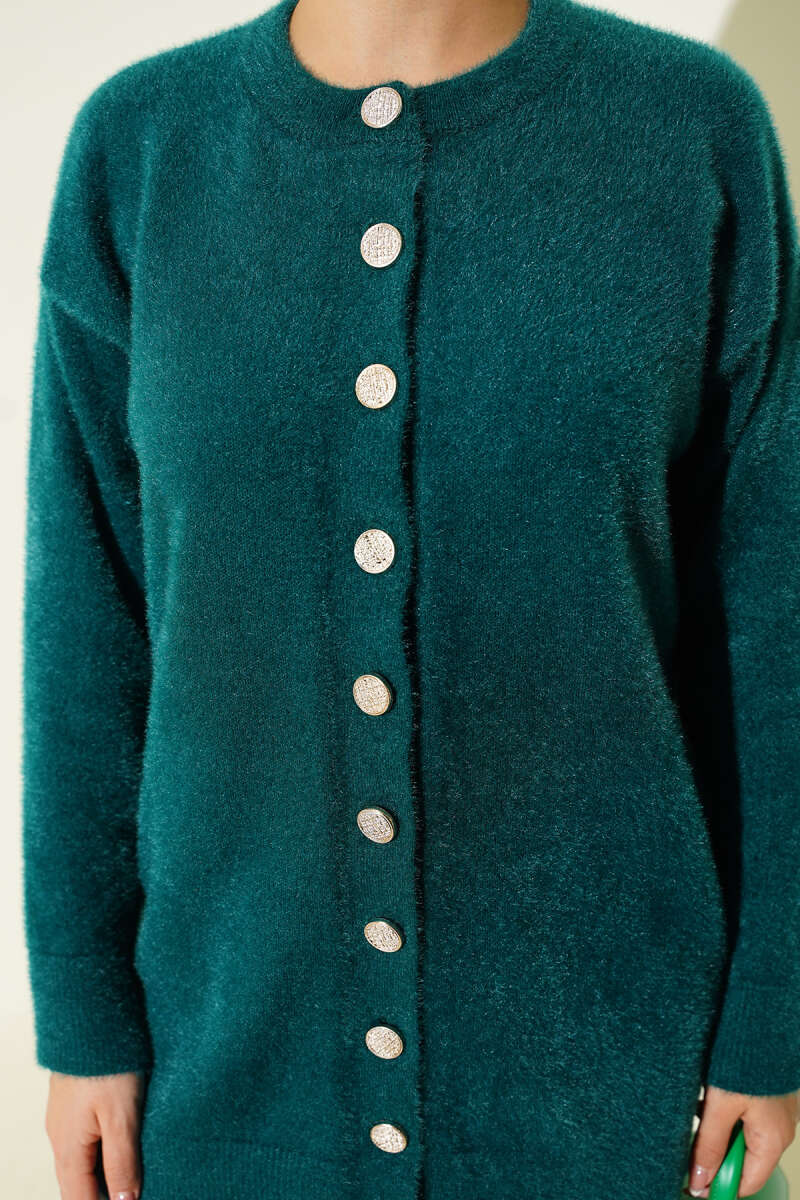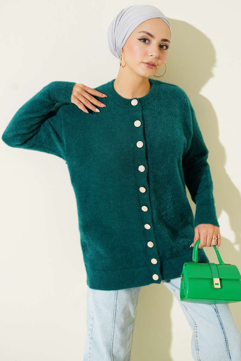 Baklava Desen Sakallı Düğmeli Triko Hırka Siyah