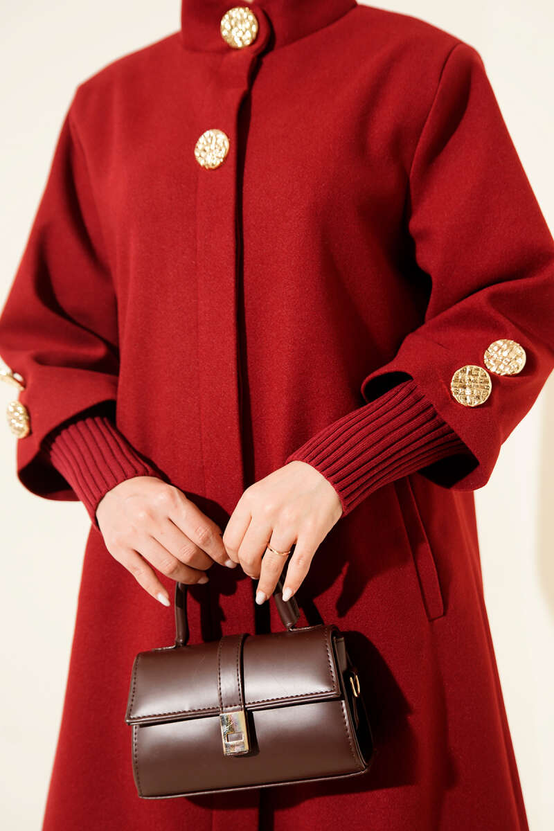 Gold Düğmeli Ribanalı Kaşe Kaban Kahve