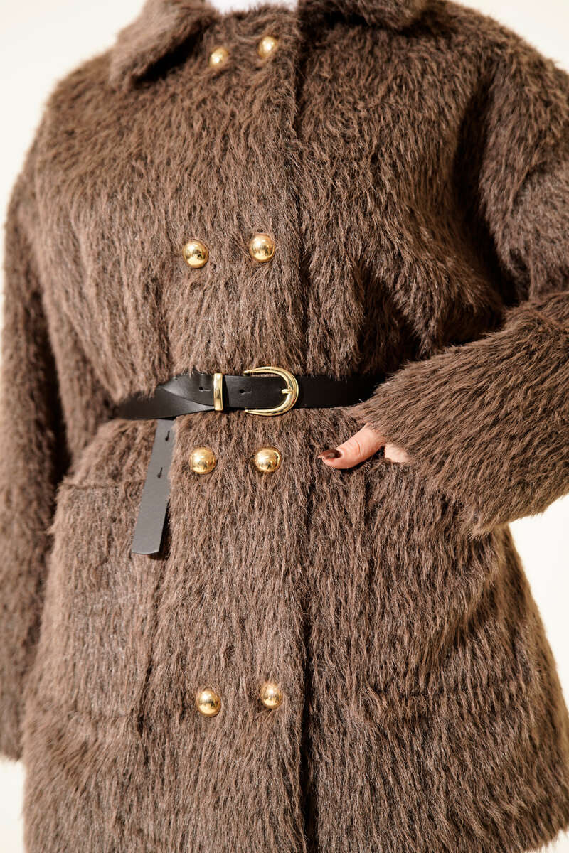 Gold Düğmeli Sakallı Kemerli Ceket Kahve