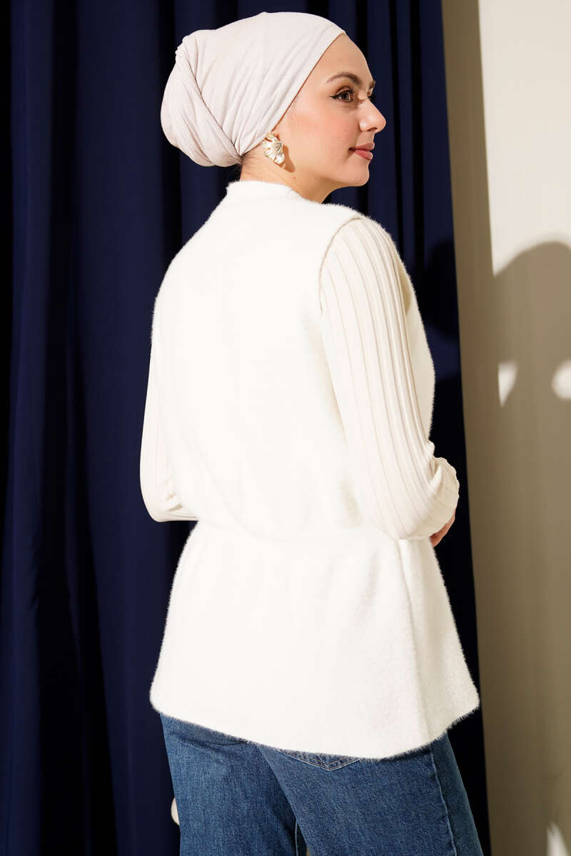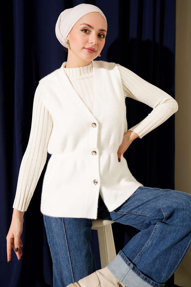 Gold Düğmeli Sakallı Yelek Ekru