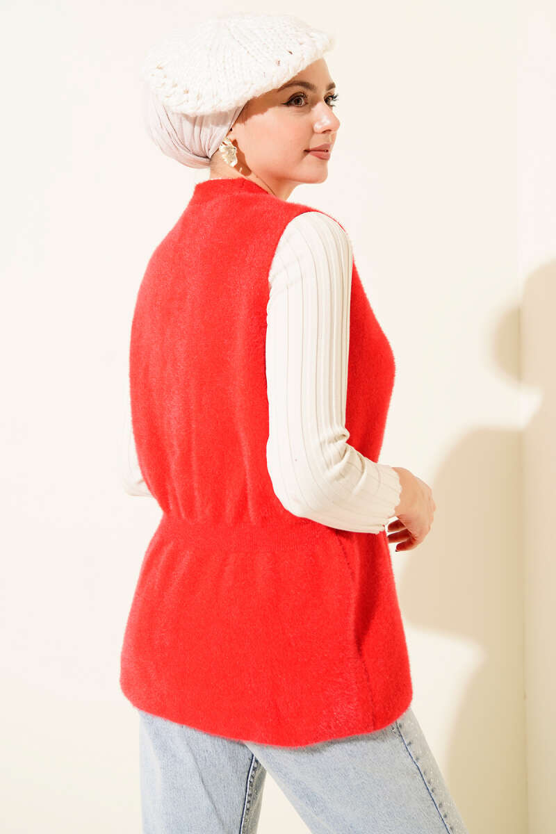 Kapüşonlu Düğmeli Kapitone Yelek Bej