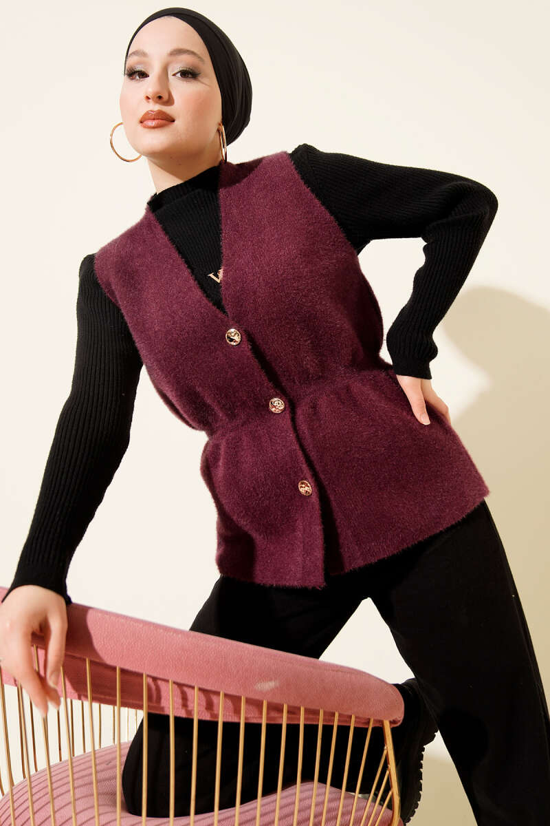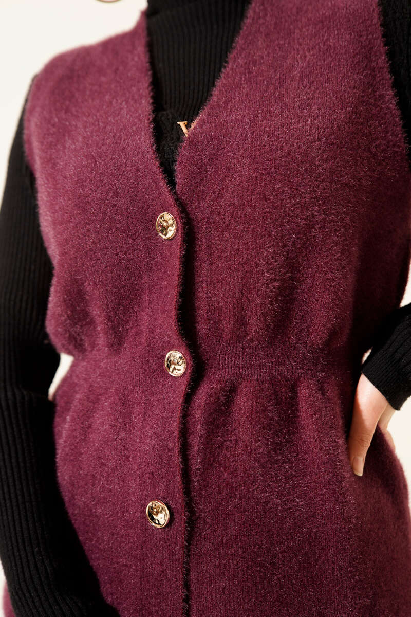 Gold Düğmeli Sakallı Yelek Kırmızı