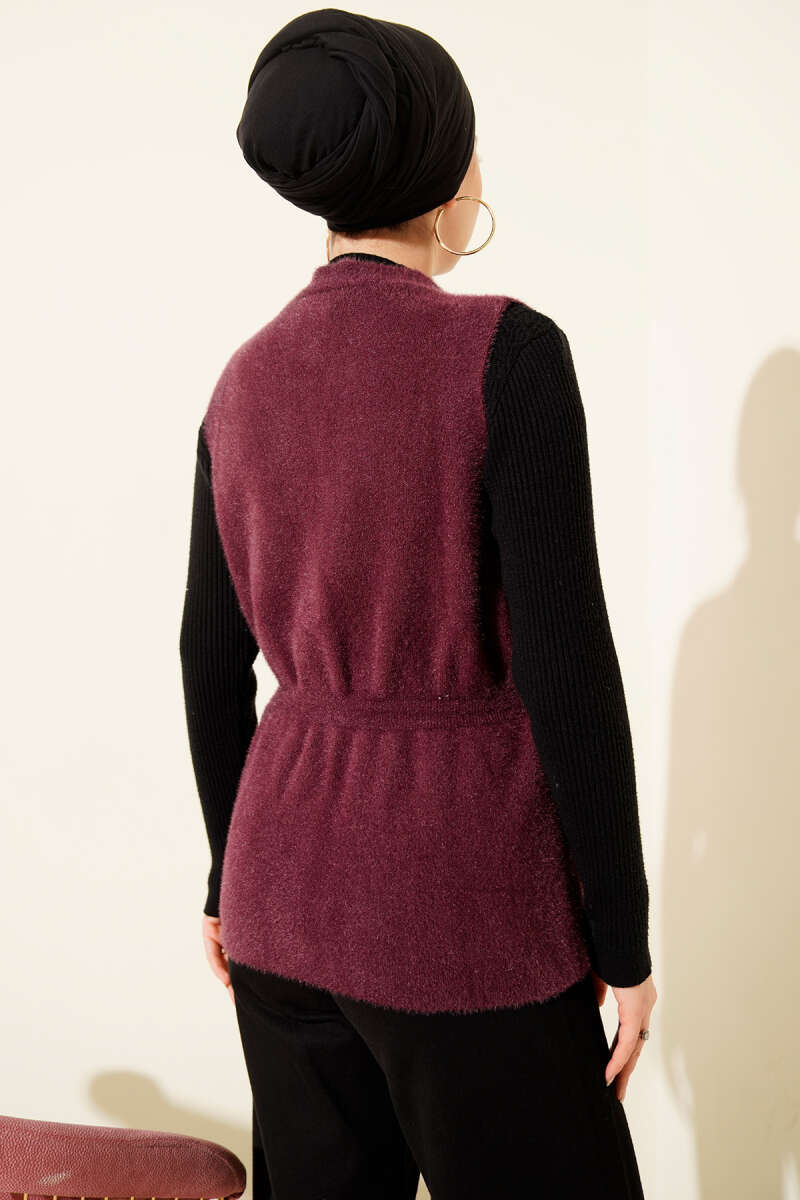 Kruvaze Yaka Kemerli Yelek Lacivert