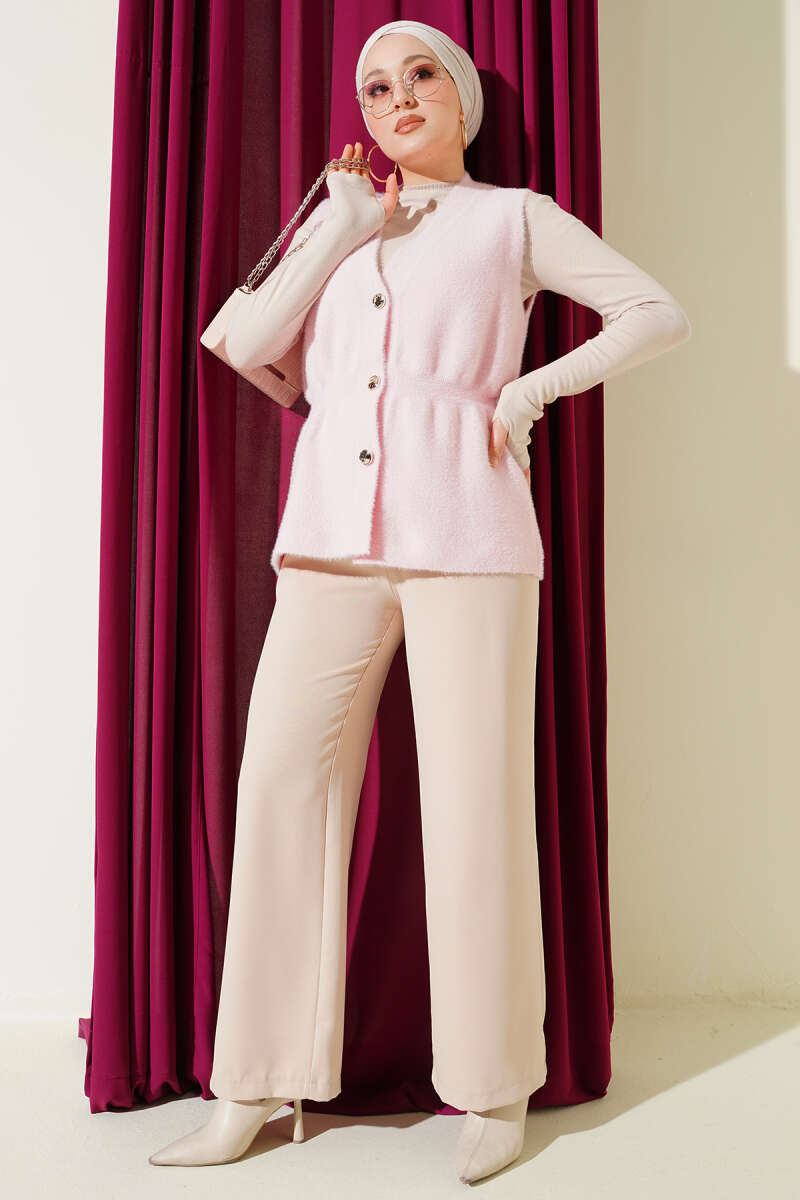 Fırfır Detaylı Düğmeli Triko Yelek Fuşya
