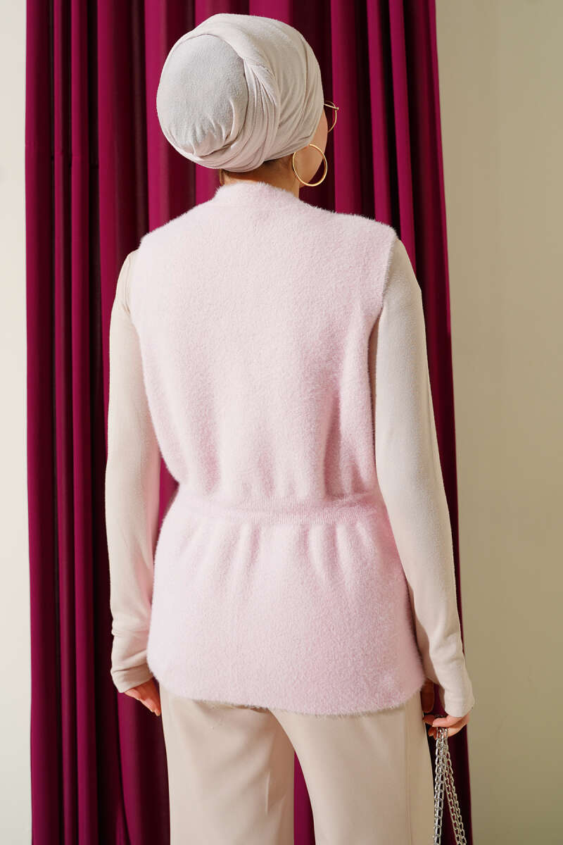 Sıfır Kol Kuşaklı Kaşe Yelek Saks
