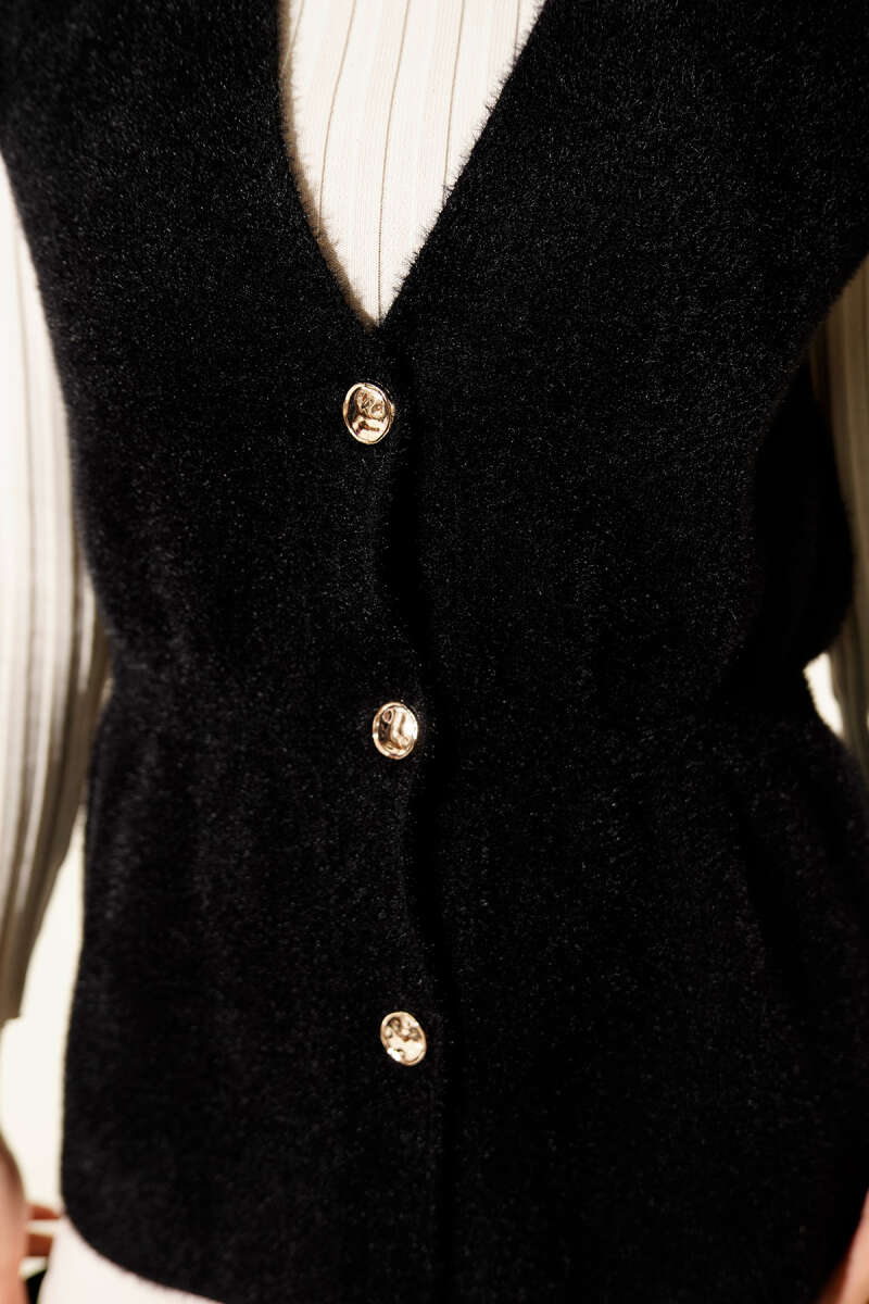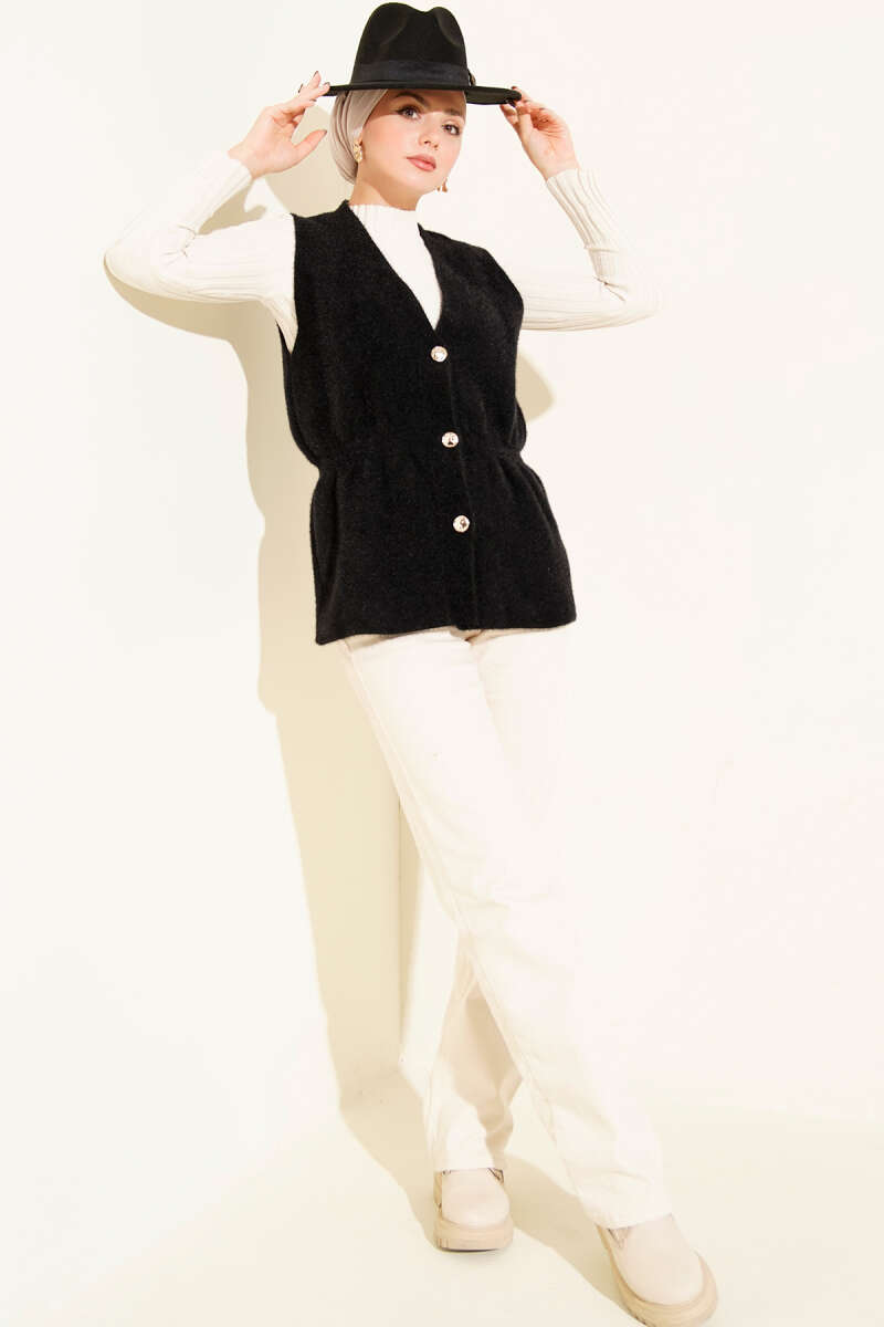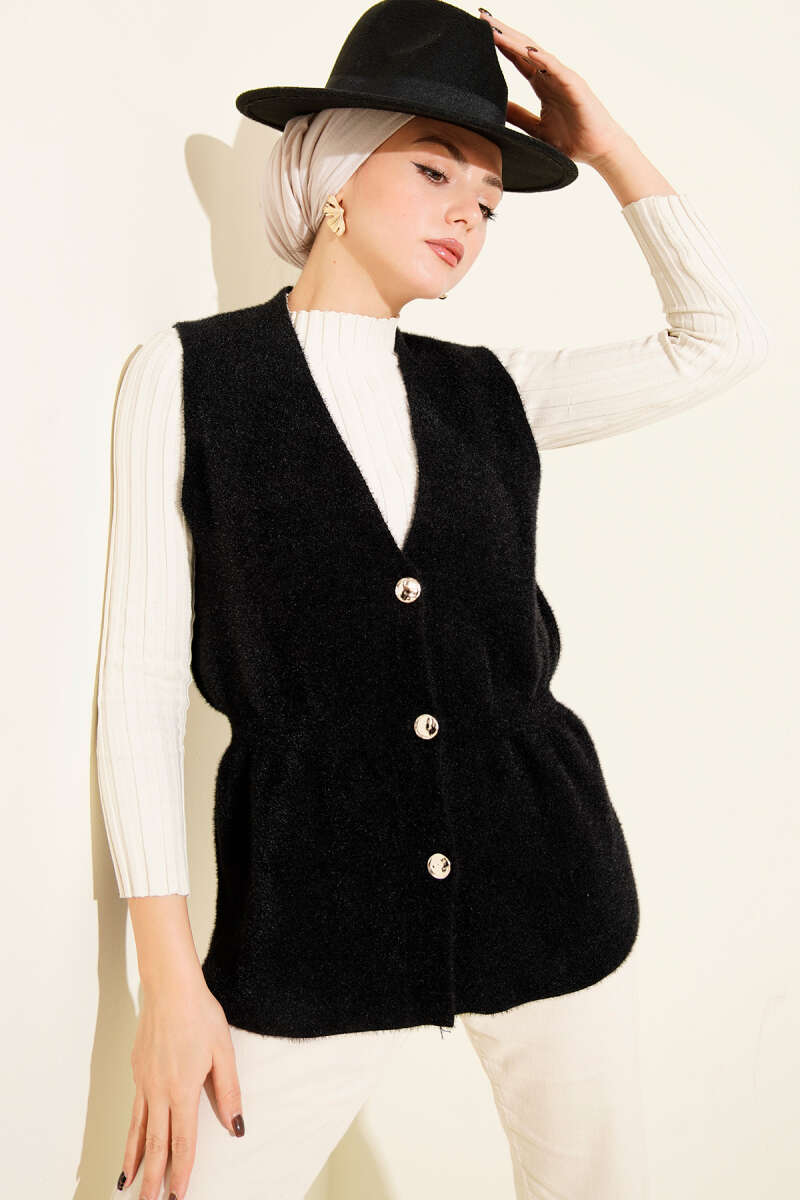 Kapüşonlu Düğmeli Kapitone Yelek Siyah
