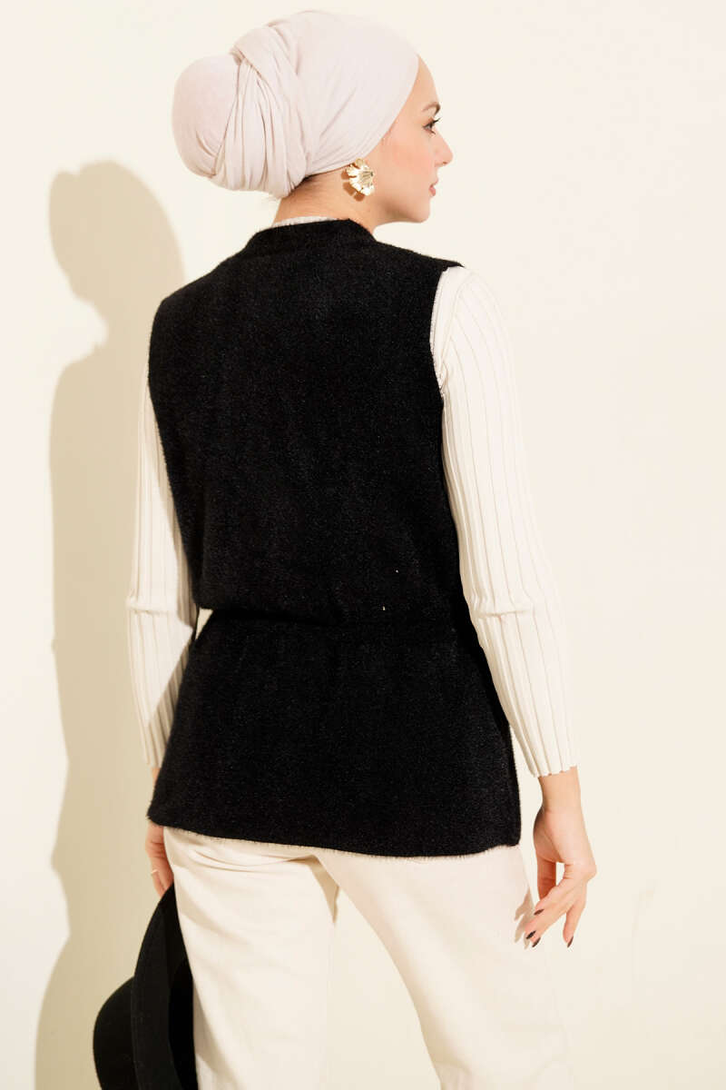 Fermuarlı Uzun Kapitone Yelek Siyah