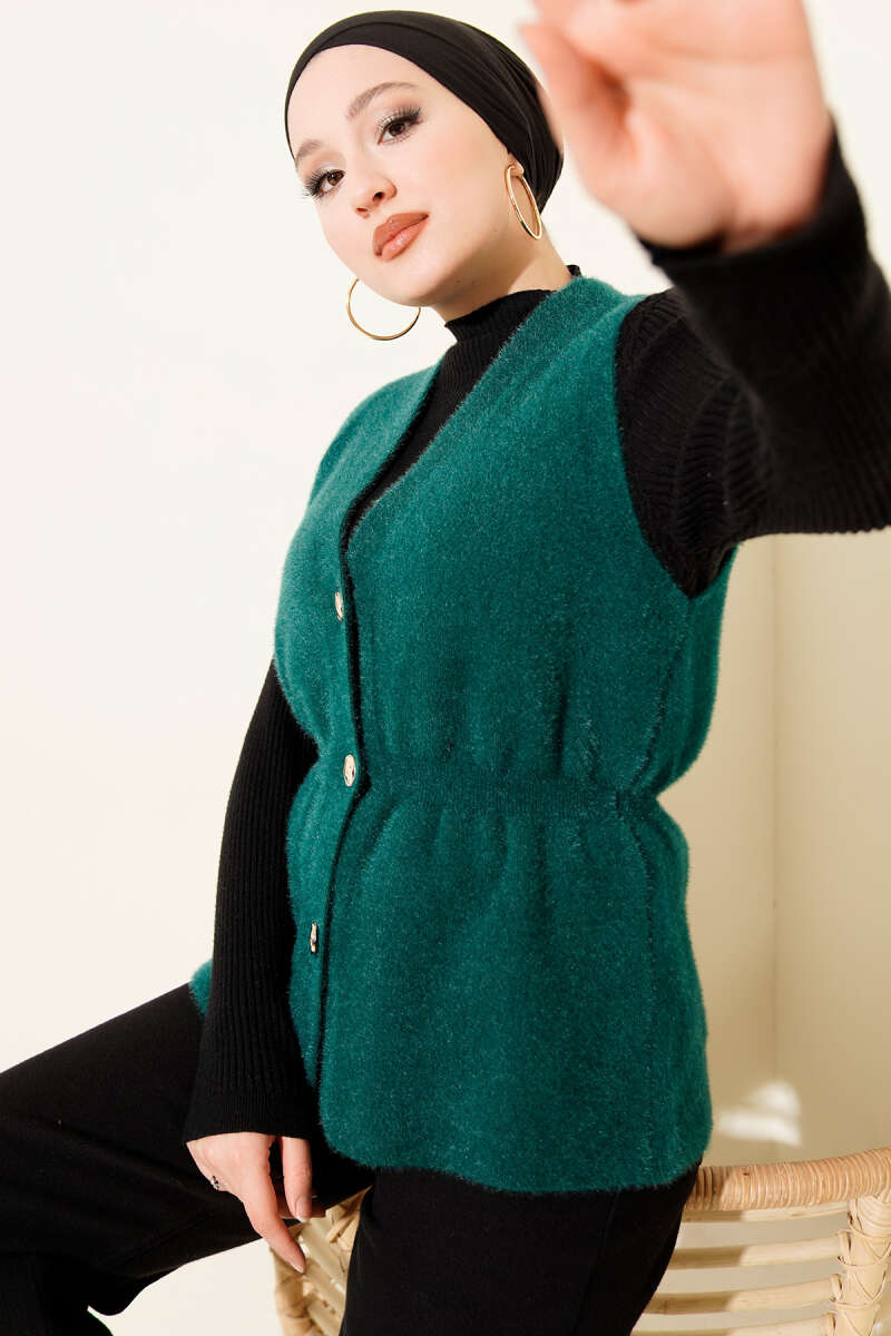 Kruvaze Yaka Kemerli Yelek Lacivert