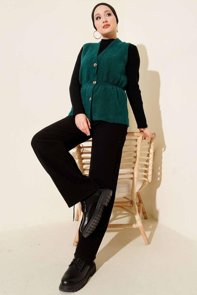 Tek Düğmeli Kemerli Sakallı Yelek Siyah