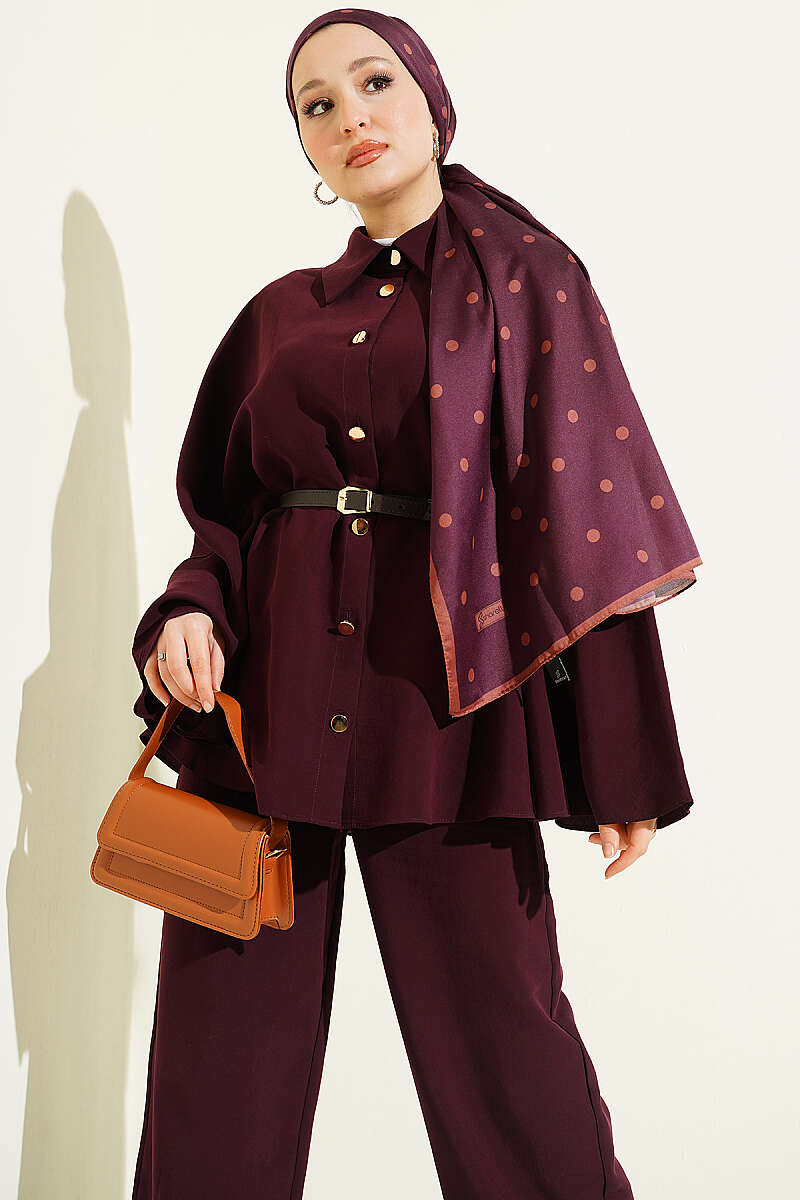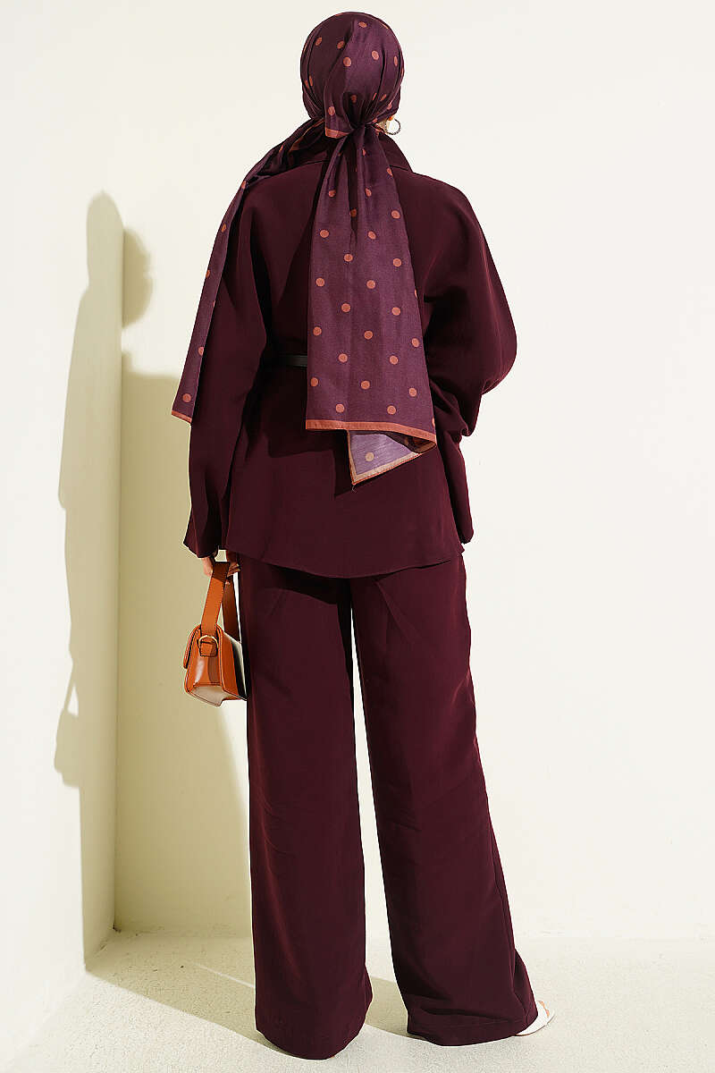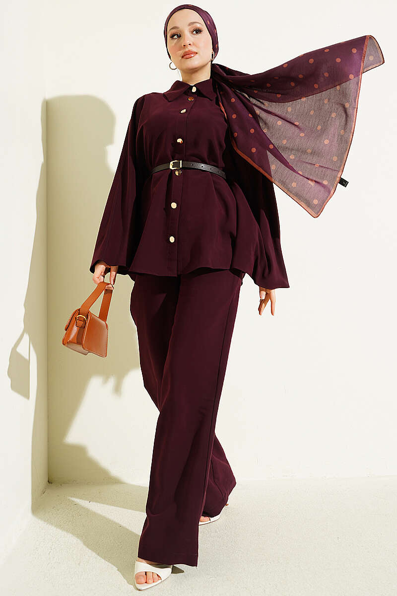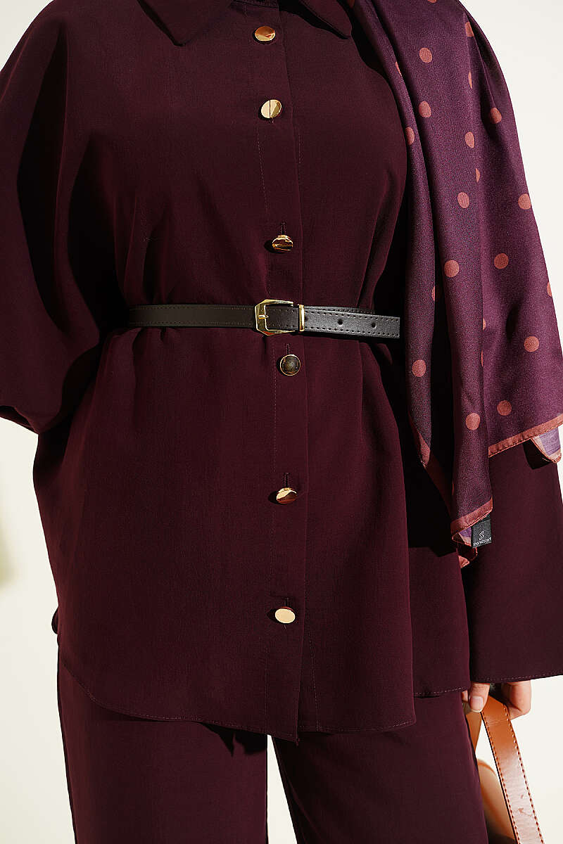 Gold Düğmeli Tensel Panço Takım Bordo